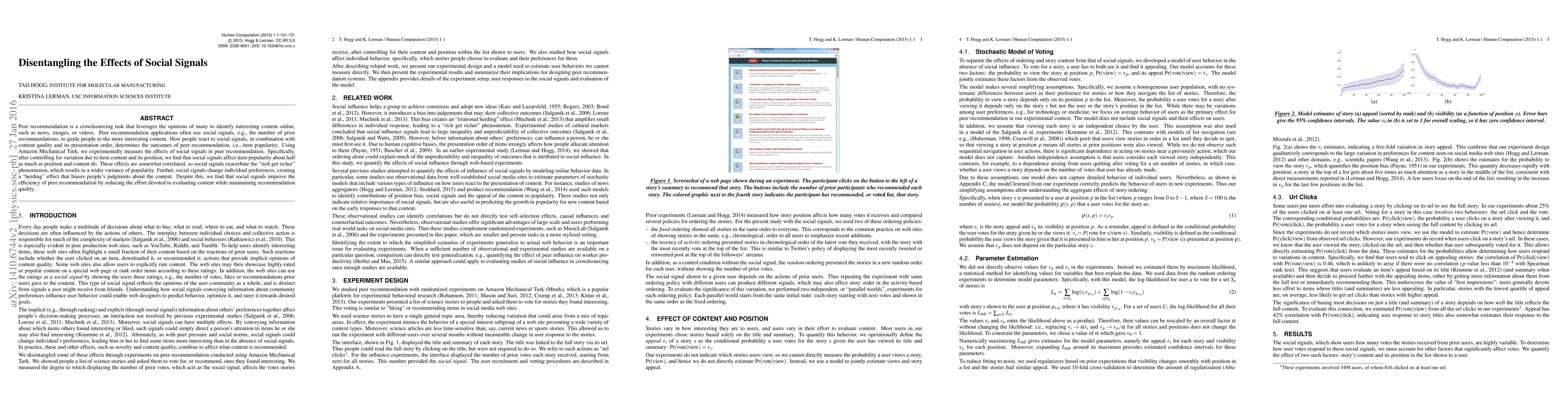 Social signals in peer recommendation affect item popularity half as much as content quality and position, but improve efficiency by reducing evaluation effort.
