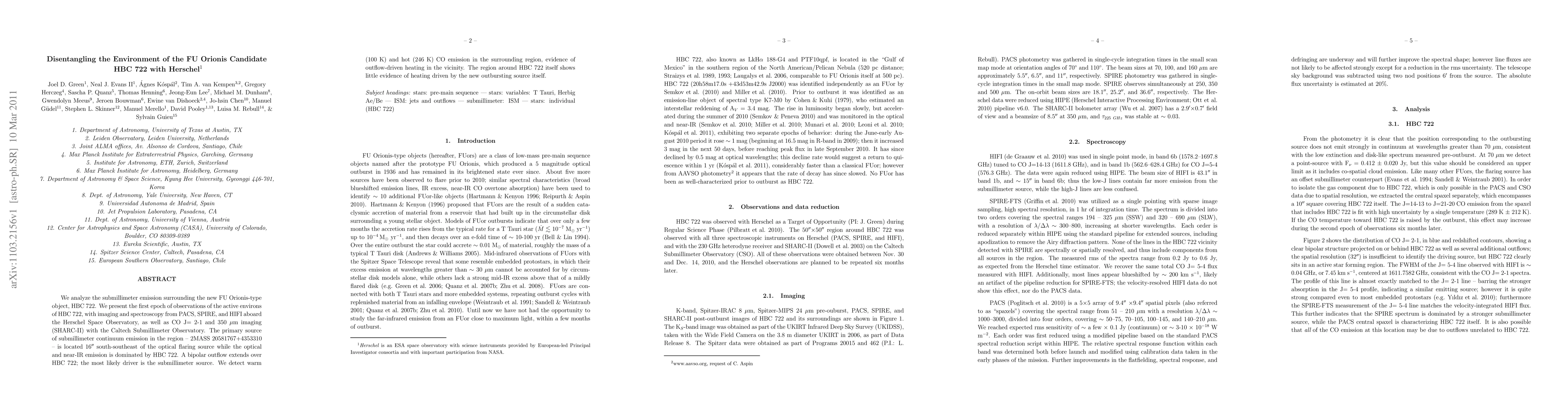 We analyze the submillimeter emission surrounding the new FU Orionis-type object, HBC 722. We present the first epoch of observations of the active environs of HBC 722, with imaging and spectroscopy from PACS, SPIRE, and HIFI aboard the Herschel Space Observatory, as well as CO J= 2-1 and 350 um imaging (SHARC-II) with the Caltech Submillimeter Observatory. The primary source of submillimeter continuum emission in the region -- 2MASS 20581767+4353310 -- is located 16$\arcsec$ south-southeast of the optical flaring source while the optical and near-IR emission is dominated by HBC 722. A bipolar outflow extends over HBC 722; the most likely driver is the submillimeter source. We detect warm (100 K) and hot (246 K) CO emission in the surrounding region, evidence of outflow-driven heating in the vicinity. The region around HBC 722 itself shows little evidence of heating driven by the new outbursting source itself.