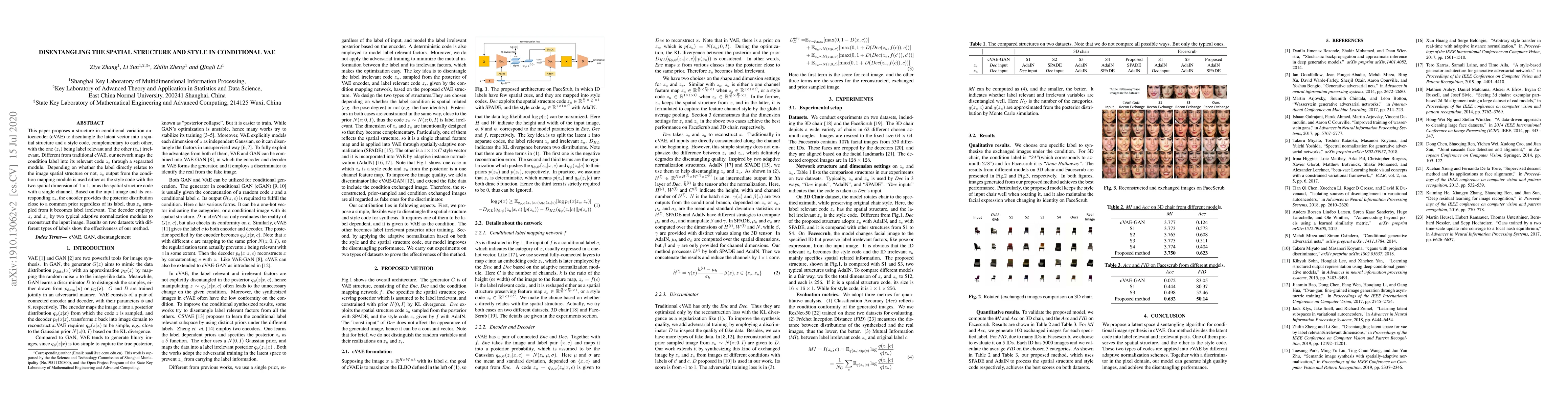 This paper aims to disentangle the latent space in cVAE into the spatial structure and the style code, which are complementary to each other, with one of them $z_s$ being label relevant and the other $z_u$ irrelevant. The generator is built by a connected encoder-decoder and a label condition mapping network. Depending on whether the label is related with the spatial structure, the output $z_s$ from the condition mapping network is used either as a style code or a spatial structure code. The encoder provides the label irrelevant posterior from which $z_u$ is sampled. The decoder employs $z_s$ and $z_u$ in each layer by adaptive normalization like SPADE or AdaIN. Extensive experiments on two datasets with different types of labels show the effectiveness of our method.