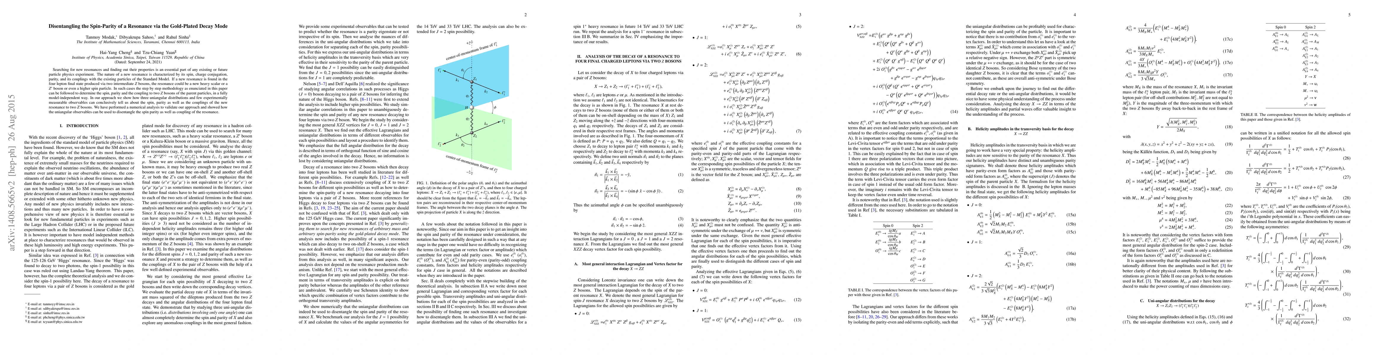 Searching for new resonances and finding out their properties is an essential part of any existing or future particle physics experiment. The nature of a new resonance is characterized by its spin, charge conjugation, parity, and its couplings with the existing particles of the Standard Model. If a new resonance is found in the four lepton final state produced via two intermediate $Z$ bosons, the resonance could be a new heavy scalar or a $Z'$ boson or even a higher spin particle. In such cases the step by step methodology as enunciated in this paper can be followed to determine the spin, parity and the coupling to two $Z$ bosons of the parent particles, in a fully model-independent way. In our approach we show how three uni-angular distributions and few experimentally measurable observables can conclusively tell us about the spin, parity as well as the couplings of the new resonance to two $Z$ bosons. We have performed a numerical analysis to validate our approach and showed how the uniangular observables can be used to disentangle the spin parity as well as coupling of the resonance.