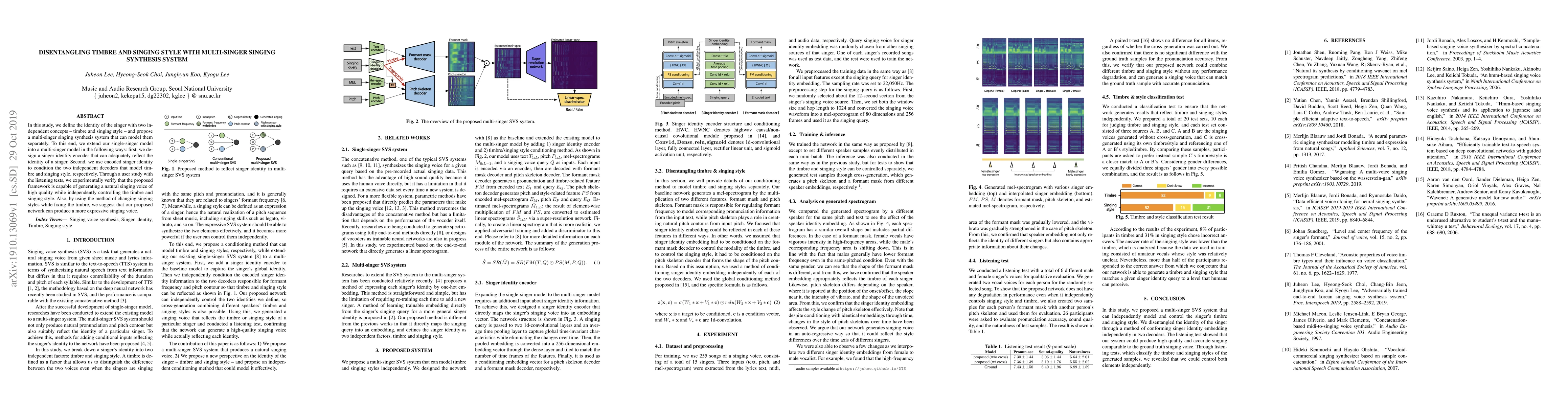 This study proposes a multi-singer singing synthesis system that separates singer identity into timbre and singing style, using an encoder-decoder framework with two independent decoders. Experimental validation via user listening tests confirms the system's ability to generate high-quality, expressive singing voices with independent control over timbre and style.