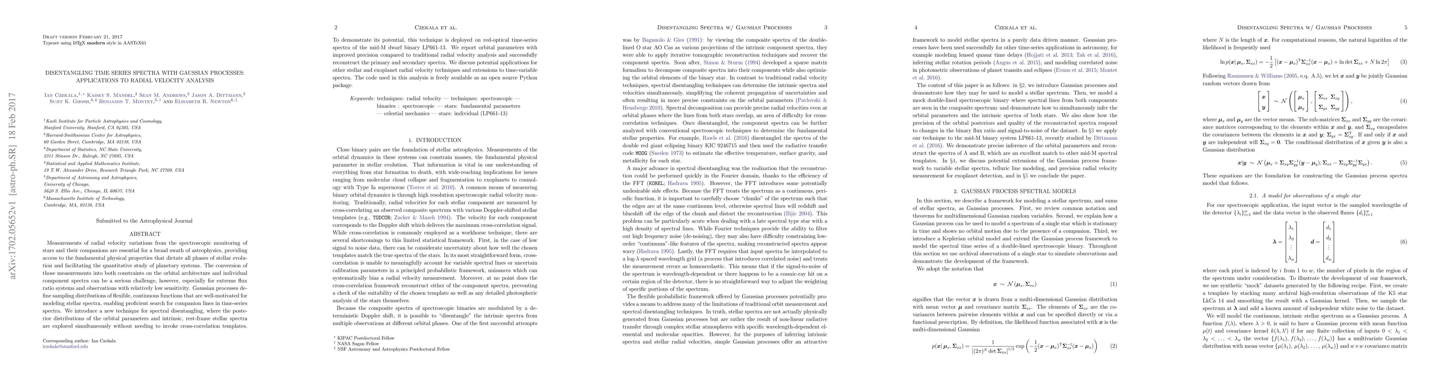 This paper introduces a Gaussian process-based technique for disentangling time-series spectra, improving radial velocity analysis for star binaries. The method simultaneously estimates orbital parameters and individual stellar spectra without cross-correlation templates, demonstrated on the mid-M dwarf binary LP661-13 with enhanced precision.