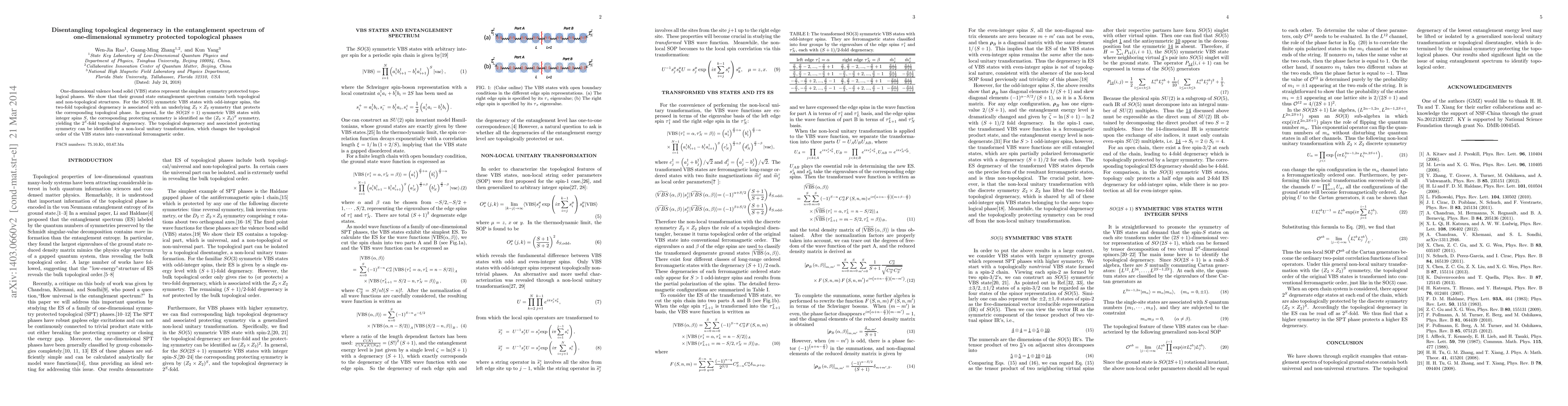This paper investigates the entanglement spectrum of one-dimensional symmetry protected topological phases, specifically valence bond solid states. It reveals that these states exhibit both topological and non-topological structures in their entanglement spectrum, with $2^{S}$-fold topological degeneracy protected by $(Z_{2}\times Z_{2})^{S}$ symmetry for $SO(2S+1)$ symmetric VBS states with integer spins $S$.