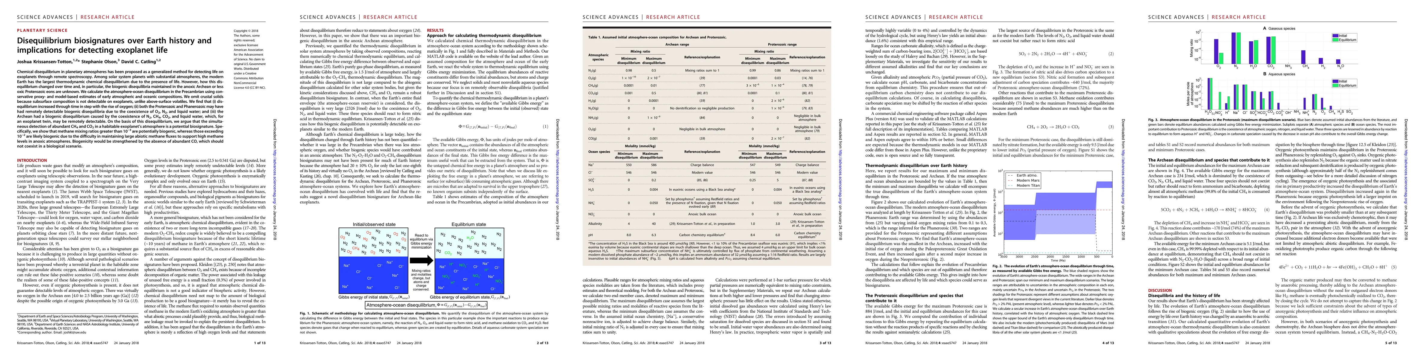 This paper explores how chemical disequilibrium in Earth's atmosphere-ocean system has varied over geological time, providing insights into potential biosignatures for detecting life on exoplanets. It finds that while the Archean had unique disequilibria, the Proterozoic and Phanerozoic periods could have shown detectable biogenic disequilibria, suggesting that high methane and carbon dioxide levels in an exoplanet's atmosphere could indicate biological activity.