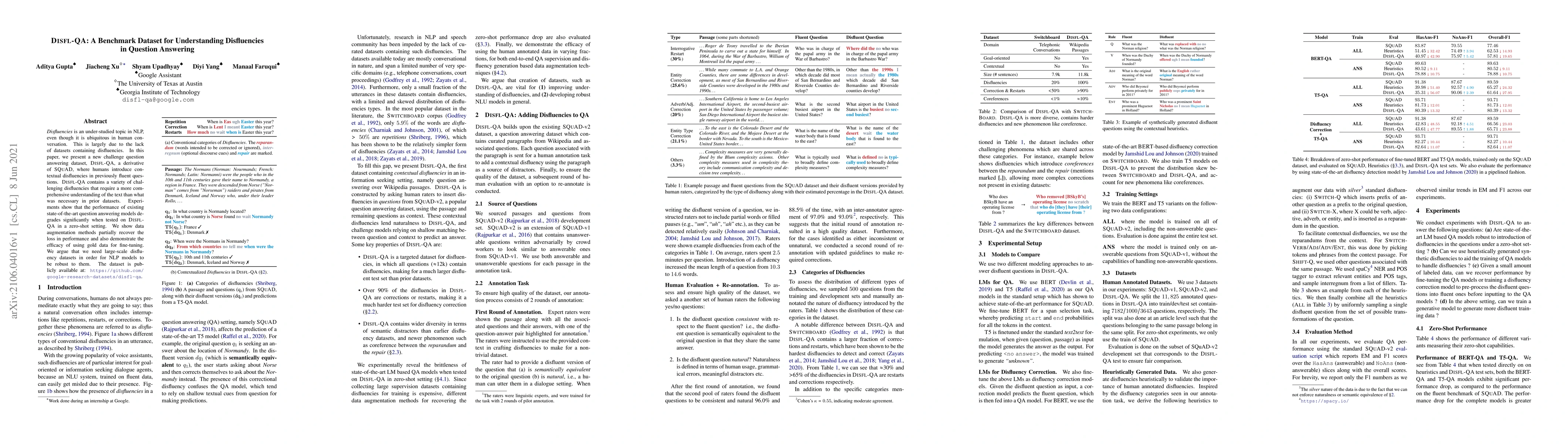 This paper introduces Disfl-QA, a new question answering dataset enriched with contextual disfluencies to study their impact on NLP models. Existing models show significant performance drops on this dataset, highlighting the need for large-scale disfluency datasets to improve NLP robustness.