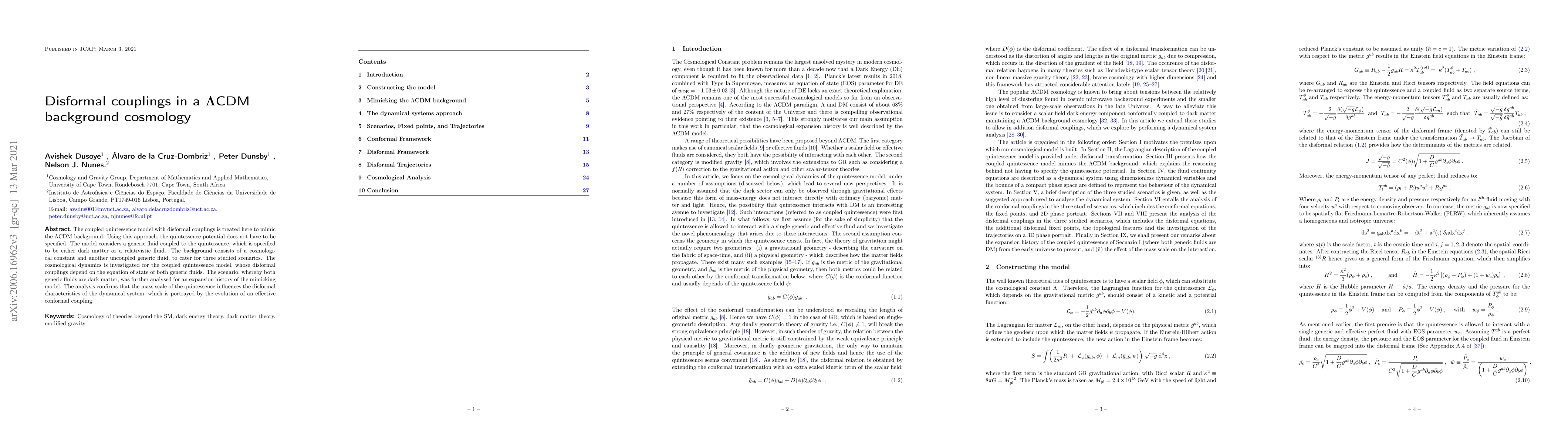 The coupled quintessence model with disformal couplings is treated here to mimic the $\Lambda$CDM background. Using this approach, the quintessence potential does not have to be specified. The model considers a generic fluid coupled to the quintessence, which is specified to be either dark matter or a relativistic fluid. The background consists of a cosmological constant and another uncoupled generic fluid, to cater for three studied scenarios. The cosmological dynamics is investigated for the coupled quintessence model, whose disformal couplings depend on the equation of state of both generic fluids. The scenario, whereby both generic fluids are dark matter, was further analyzed for an expansion history of the mimicking model. The analysis confirms that the mass scale of the quintessence influences the disformal characteristics of the dynamical system, which is portrayed by the evolution of an effective conformal coupling.