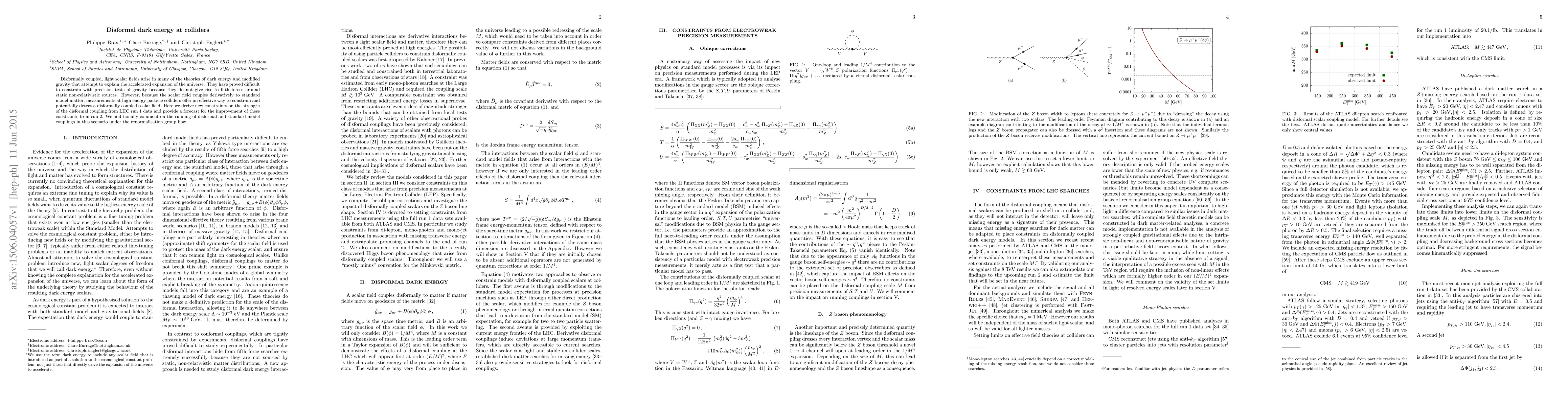 This paper explores the potential of high-energy particle colliders, specifically the LHC, to constrain disformally coupled scalar fields associated with dark energy. It derives new constraints from LHC run 1 data and forecasts improvements from run 2, while also discussing the renormalization group flow of these couplings.