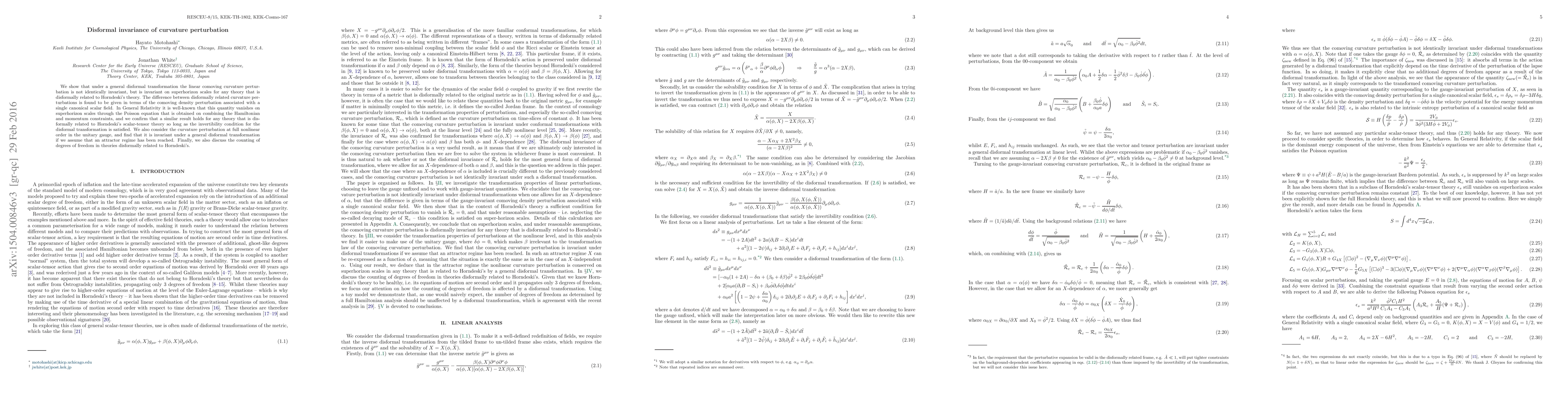 This research proves that the linear comoving curvature perturbation remains unchanged on superhorizon scales for theories disformally related to Horndeski's theory, with differences attributed to comoving density perturbations. The study also confirms that a similar superhorizon invariance holds for the curvature perturbation at full nonlinear order in the unitary gauge under attractor regime assumptions. Lastly, it discusses the degrees of freedom counting in theories disformally related to Horndeski's.
