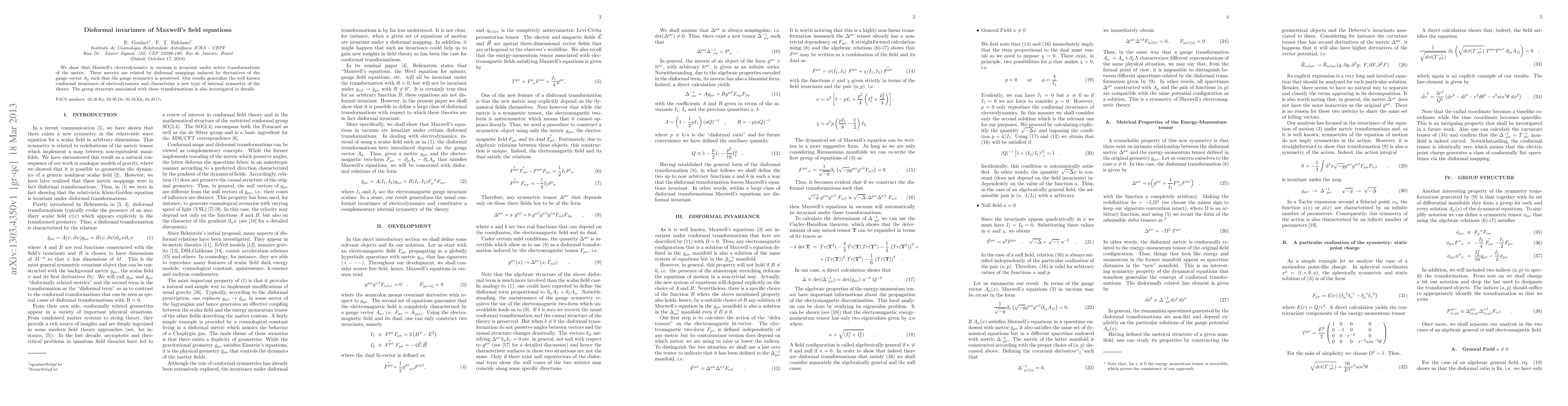 This paper demonstrates that Maxwell's electrodynamics in vacuum exhibits disformal invariance under metric transformations, preserving gauge symmetry, and generalizes conformal invariance. The study also delves into the group structure linked to these disformal transformations.