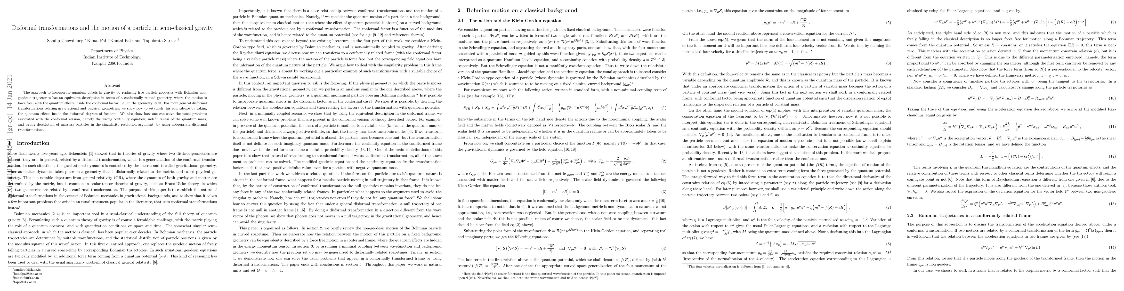 The approach to incorporate quantum effects in gravity by replacing free particle geodesics with Bohmian non-geodesic trajectories has an equivalent description in terms of a conformally related geometry, where the motion is force free, with the quantum effects inside the conformal factor, i.e., in the geometry itself. For more general disformal transformations relating gravitational and physical geometries, we show how to establish this equivalence by taking the quantum effects inside the disformal degrees of freedom. We also show how one can solve the usual problems associated with the conformal version, namely the wrong continuity equation, indefiniteness of the quantum mass, and wrong description of massless particles in the singularity resolution argument, by using appropriate disformal transformations.