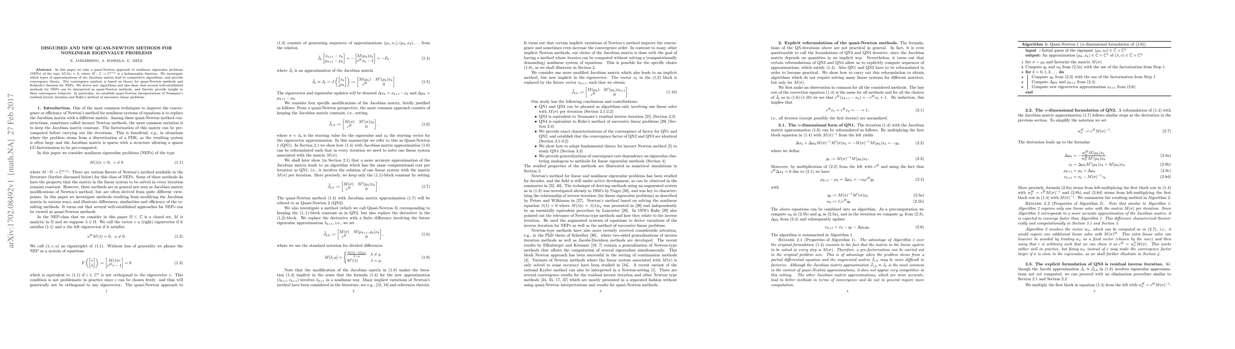 This paper develops quasi-Newton methods for solving nonlinear eigenvalue problems, analyzing their convergence based on quasi-Newton theory and Keldysh's theorem. It also reinterprets established methods like Neumaier's and Ruhe's as quasi-Newton approaches, offering insights into their convergence behavior.