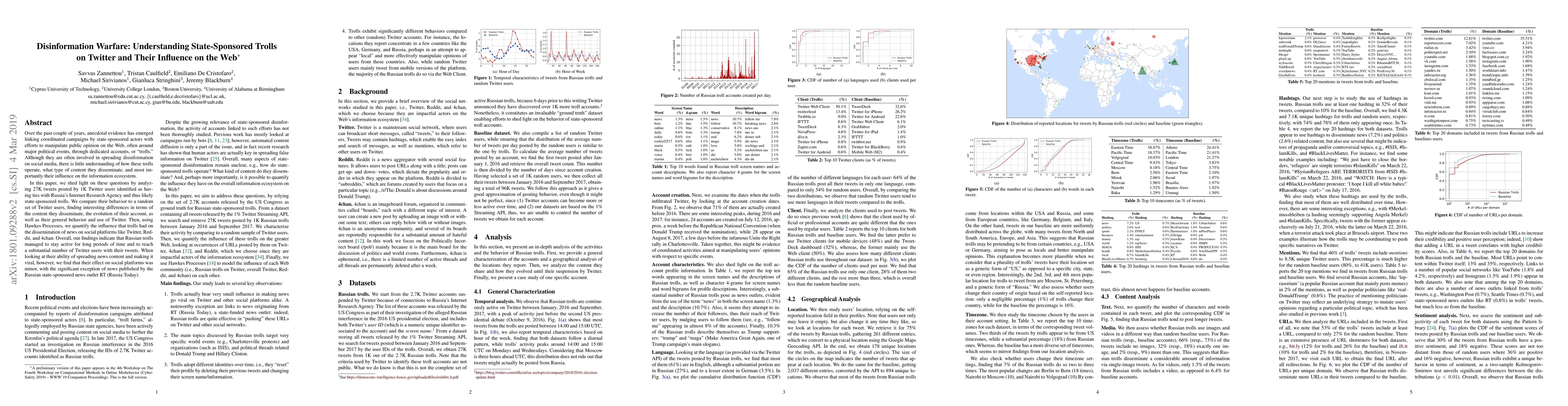 This paper analyzes 27K tweets from 1K Russian state-sponsored trolls to understand their behavior and influence on social media platforms. The study finds that while these trolls remained active and reached many users, their overall impact on spreading news content was minor, except for RT news.