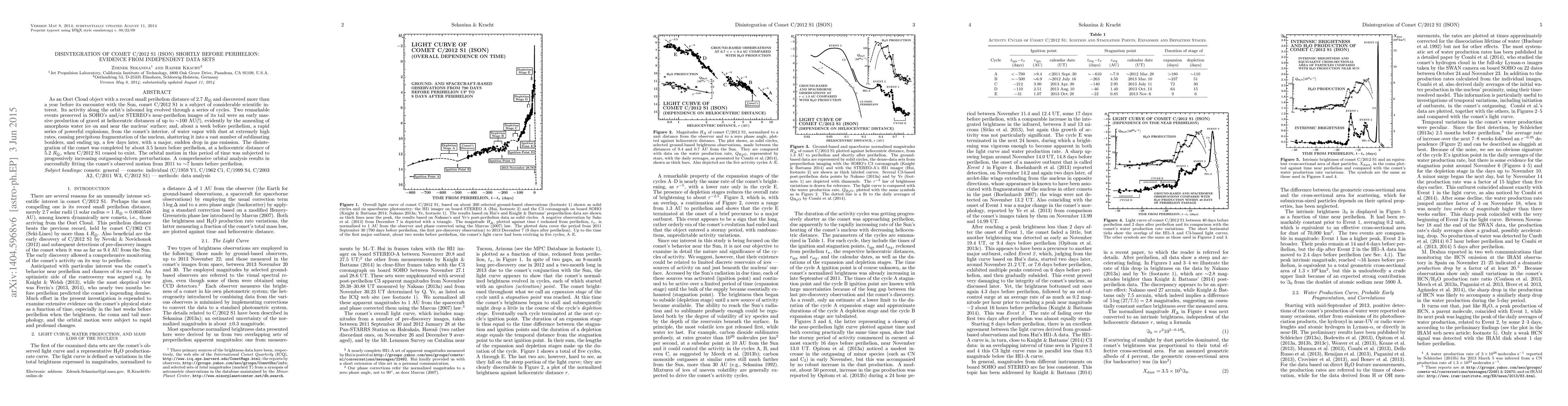As an Oort Cloud object with a record small perihelion distance of 2.7 Rsun and discovered more than a year before its encounter with the Sun, comet C/2012 S1 is a subject of considerable scientific interest. Its activity along the orbit's inbound leg evolved through a series of cycles. Two remarkable events preserved in SOHO's and/or STEREO's near-perihelion images of its tail were an early massive production of gravel at heliocentric distances of up to ~100 AU, evidently by the annealing of amorphous water ice on and near the nucleus' surface; and, about a week before perihelion, a rapid series of powerful explosions, from the comet's interior, of water with dust at extremely high rates, causing precipitous fragmentation of the nucleus, shattering it into a vast number of sublimating boulders, and ending up, a few days later, with a major, sudden drop in gas emission. The disintegration of the comet was completed by about 3.5 hours before perihelion, at a heliocentric distance of 5.2 Rsun, when C/2012 S1 ceased to exist as an active comet. The orbital motion in this period of time was subjected to progressively increasing outgassing-driven perturbations. A comprehensive orbital analysis results in successfully fitting the comet's observed motion from 2011 to ~7 hours before perihelion.