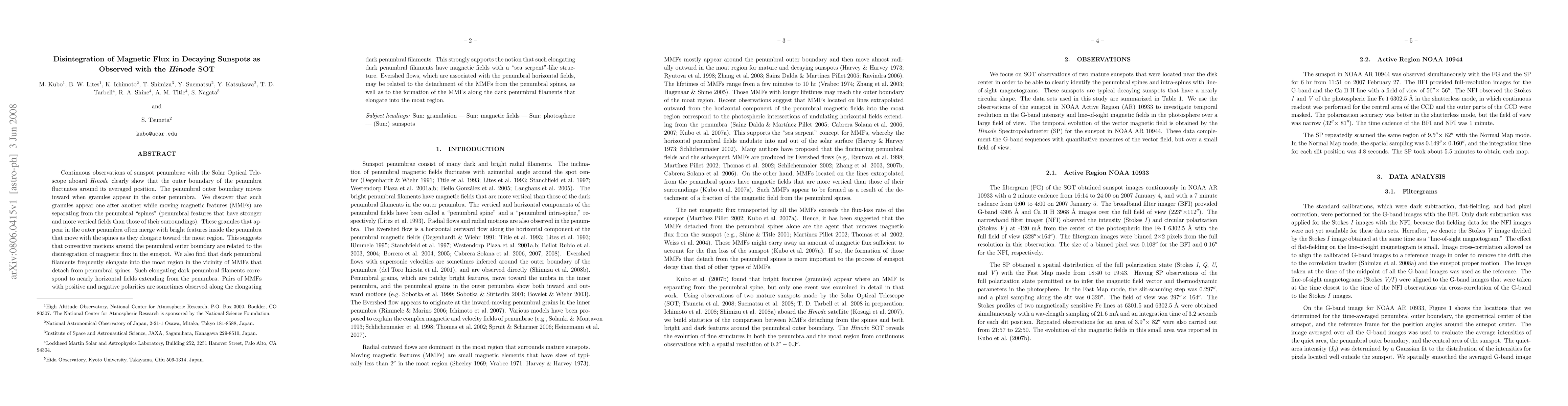 The Hinode SOT observations reveal that sunspot penumbrae's outer boundary fluctuates due to granules appearing as magnetic features detach from penumbral spines. This process suggests a connection between convective motions and the disintegration of magnetic flux, with elongating dark filaments indicating a "sea serpent"-like magnetic structure.