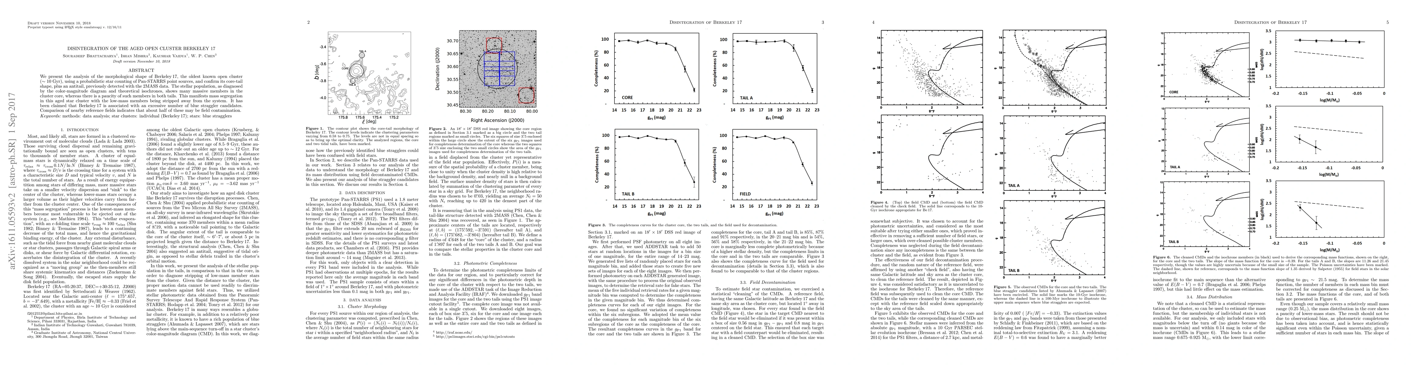This study analyzes the oldest known open cluster, Berkeley 17, revealing its core-tail shape and an antitail, indicating mass segregation where low-mass stars are stripped away. The cluster also shows an excess of blue stragglers, but half are attributed to field contamination.