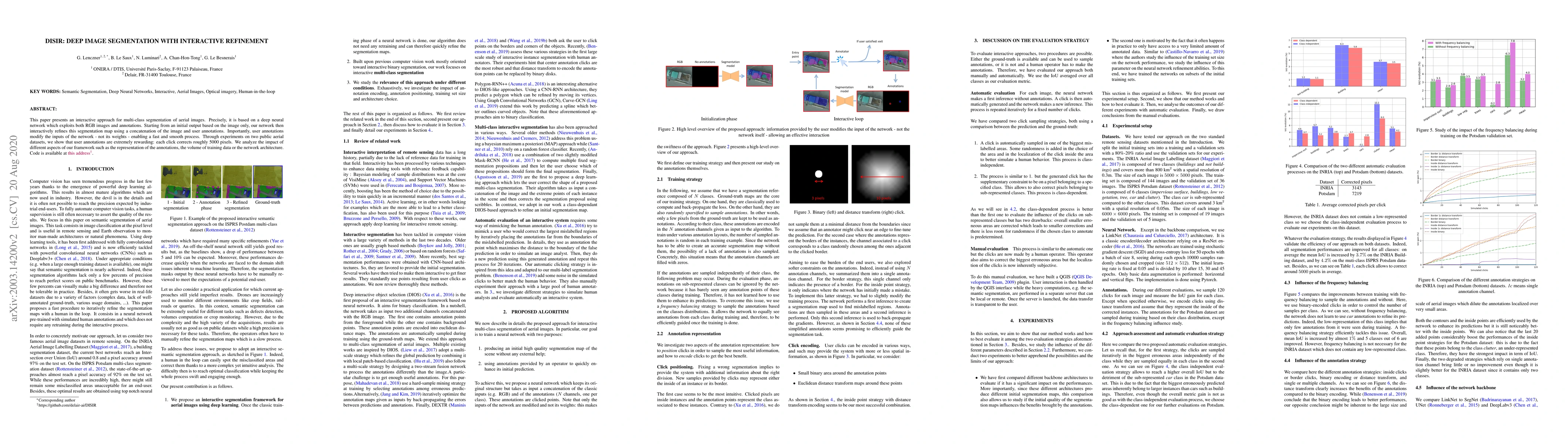 This paper introduces DISIR, an interactive deep neural network for multi-class segmentation of aerial images, refining initial segmentations with user annotations. Experiments show significant improvement, with each click correcting around 5000 pixels, and the framework's effectiveness is analyzed based on various factors.