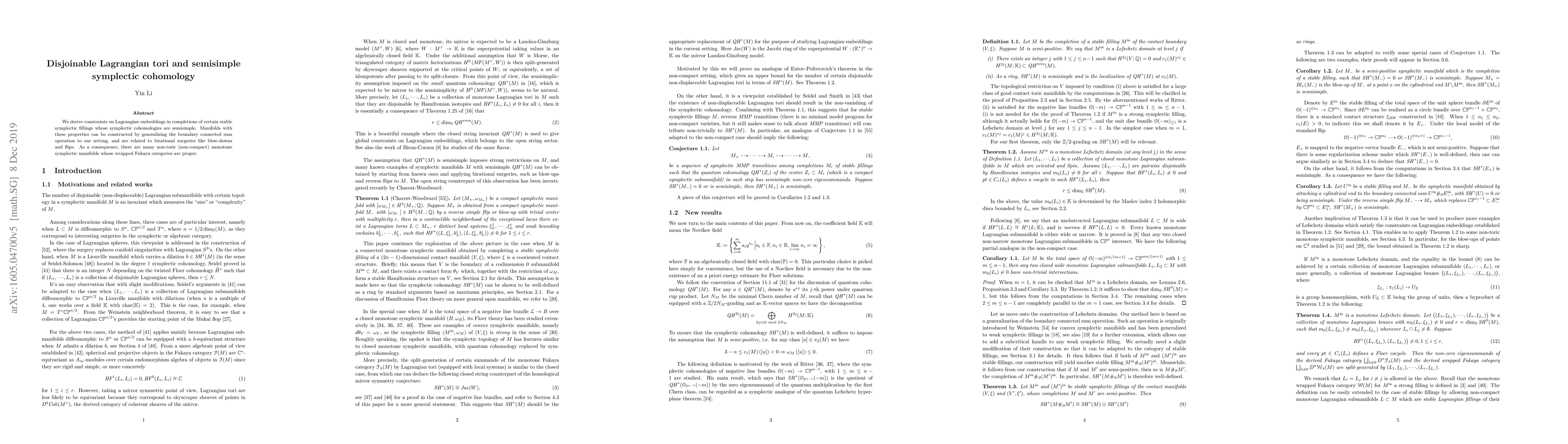 This paper explores Lagrangian embeddings in stable symplectic fillings, deriving constraints linked to semisimple symplectic cohomologies. It constructs non-toric monotone symplectic manifolds via generalized boundary connected sum operations, revealing that many have proper wrapped Fukaya categories.