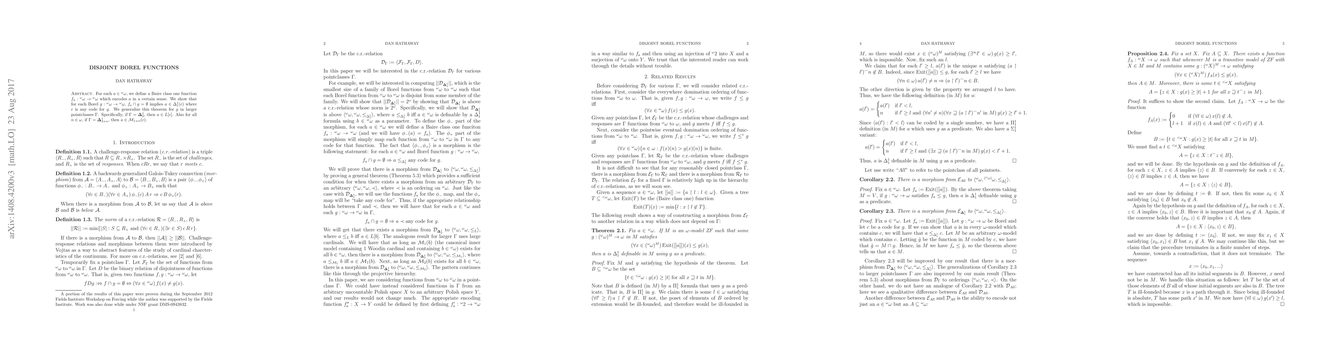 This paper defines Borel functions $f_a$ encoding real numbers $a$ and proves that disjointness from another Borel function $g$ implies $a$ belongs to certain analytical classes $\Delta^1_1(c)$. The results are generalized for larger pointclasses $\Gamma$, showing membership in $L[c]$ for $\Gamma = \mathbf{\Delta}^1_2$ and $\mathcal{M}_{1 + n}(c)$ for $\Gamma = \mathbf{\Delta}^1_{3 + n}$.