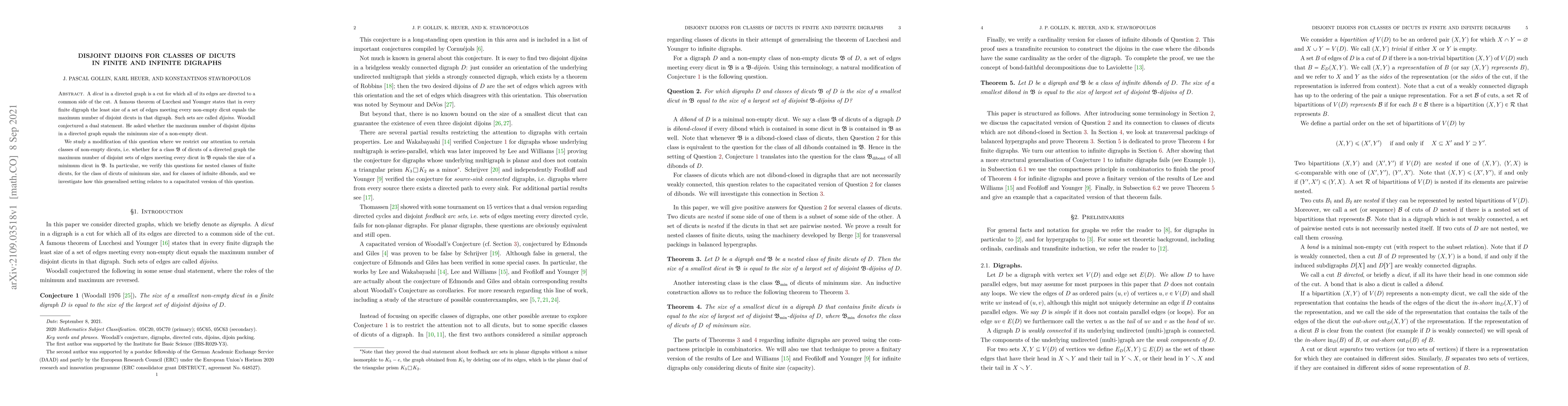 A dicut in a directed graph is a cut for which all of its edges are directed to a common side of the cut. A famous theorem of Lucchesi and Younger states that in every finite digraph the least size of a set of edges meeting every non-empty dicut equals the maximum number of disjoint dicuts in that digraph. Such sets are called dijoins. Woodall conjectured a dual statement. He asked whether the maximum number of disjoint dijoins in a directed graph equals the minimum size of a non-empty dicut. We study a modification of this question where we restrict our attention to certain classes of non-empty dicuts, i.e. whether for a class $\mathfrak{B}$ of dicuts of a directed graph the maximum number of disjoint sets of edges meeting every dicut in $\mathfrak{B}$ equals the size of a minimum dicut in $\mathfrak{B}$. In particular, we verify this questions for nested classes of finite dicuts, for the class of dicuts of minimum size, and for classes of infinite dibonds, and we investigate how this generalised setting relates to a capacitated version of this question.