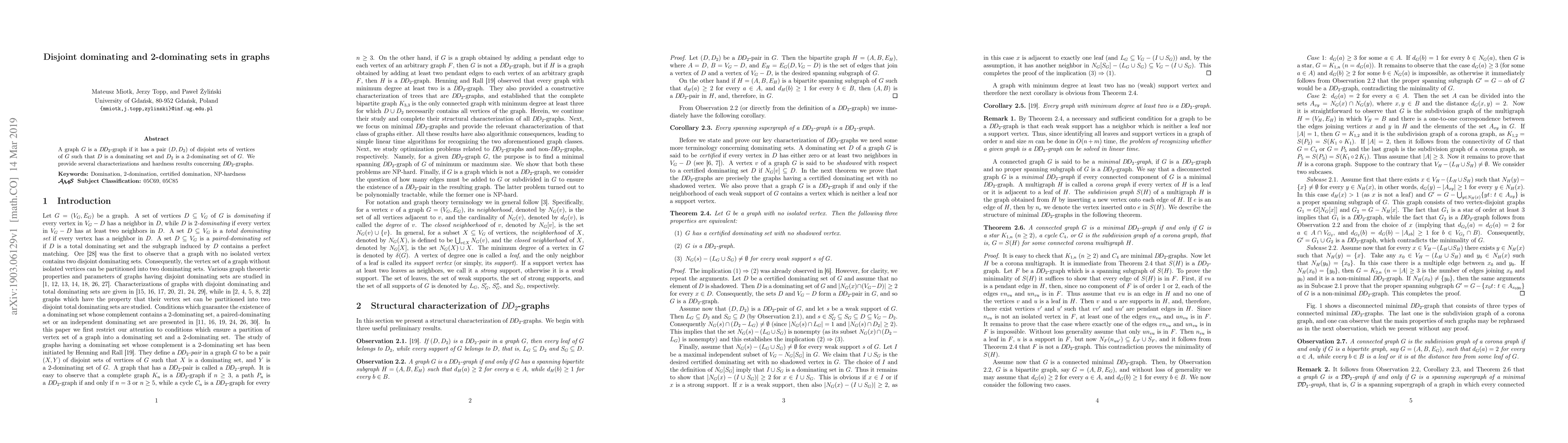 This paper studies $D\!D_2$-graphs, which are graphs with disjoint dominating and 2-dominating sets, providing several characterizations and demonstrating the computational complexity of determining such graphs.