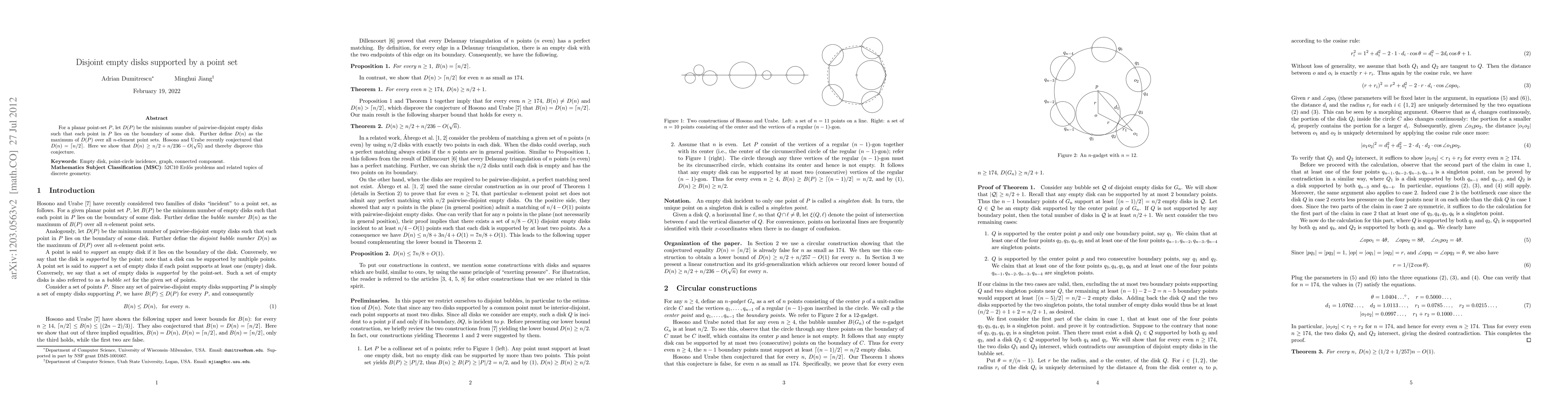 The paper presents a construction and analysis of a point set to determine a lower bound on the minimum number of pairwise-disjoint empty disks required to cover all points, disproving a previously conjectured bound.