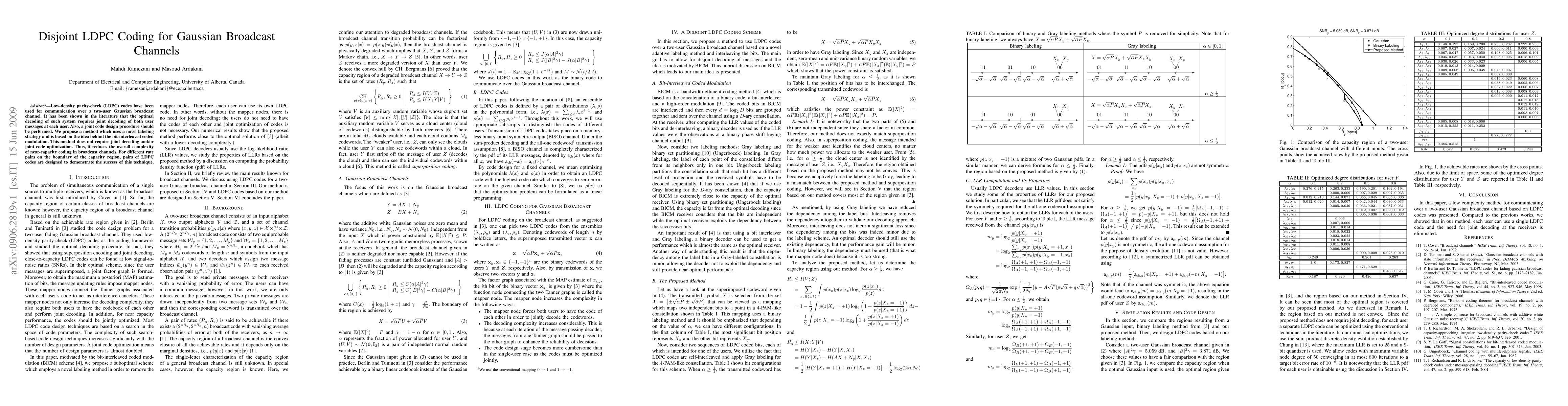 This paper proposes a novel disjoint LDPC coding method for two-user Gaussian broadcast channels, eliminating the need for joint decoding and code optimization, thus reducing complexity. The method employs a labeling strategy inspired by bit-interleaved coded modulation and demonstrates effective performance for different rate pairs.