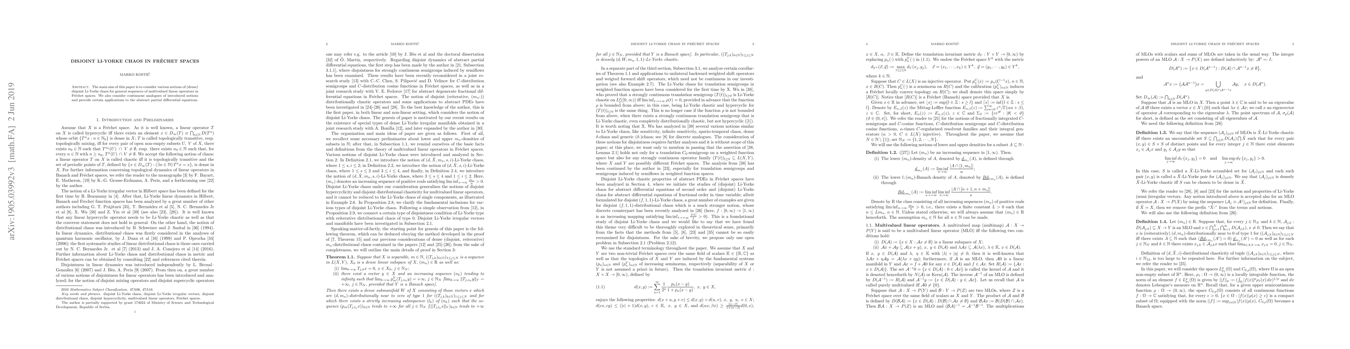 The main aim of this paper is to consider various notions of (dense) disjoint Li-Yorke chaos for general sequences of multivalued linear operators in Fr\' echet spaces. We also consider continuous analogues of introduced notions and provide certain applications to the abstract partial differential equations.