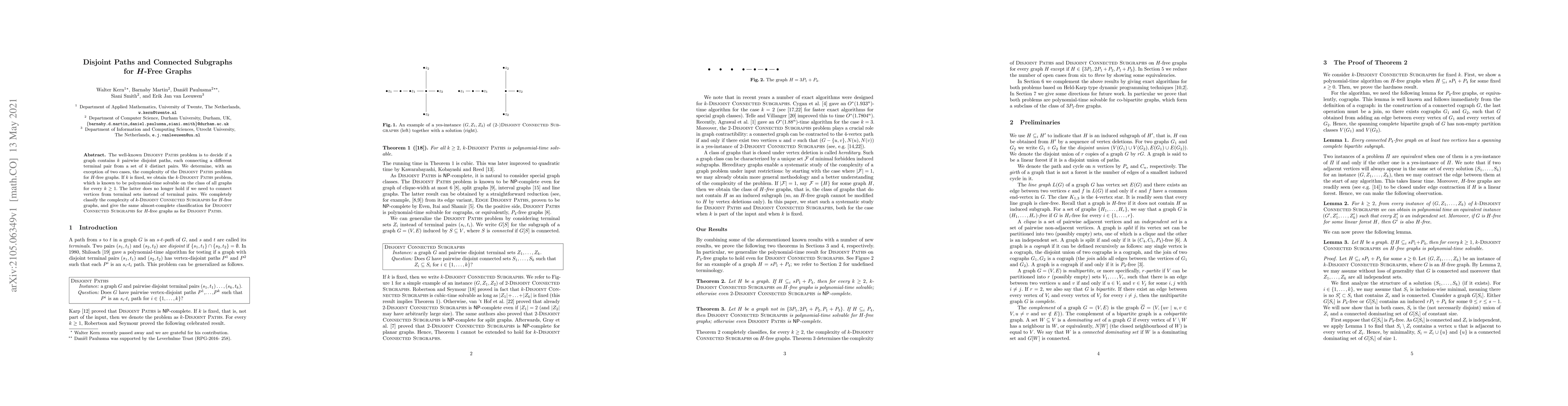 The paper presents a comprehensive analysis of the Disjoint Paths and Disjoint Connected Subgraphs problems for H-free graphs, employing a combination of theoretical proofs and algorithmic techniques.