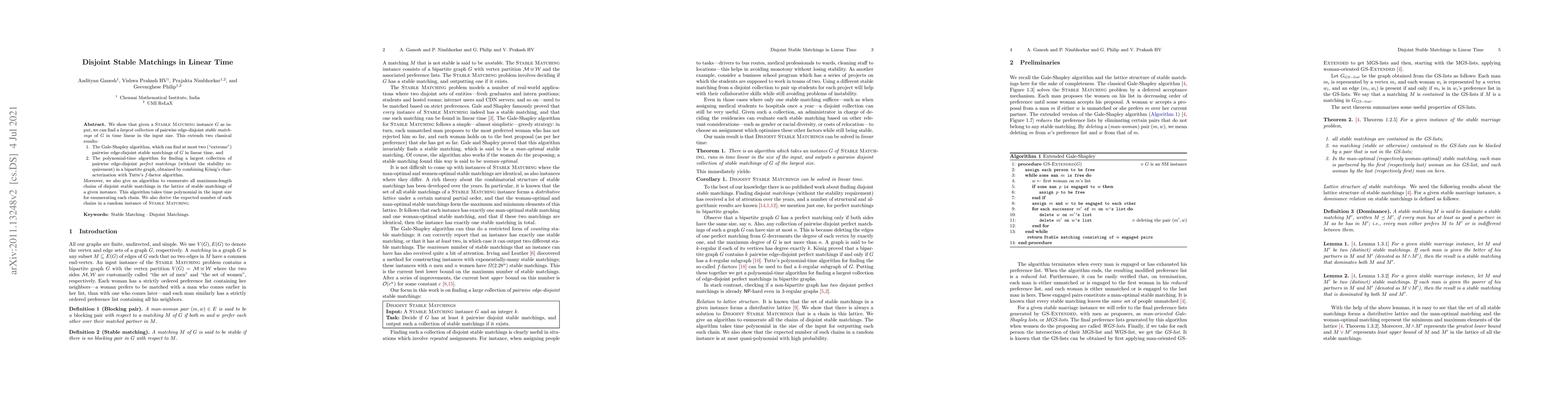 We show that given a SM instance G as input we can find a largest collection of pairwise edge-disjoint stable matchings of G in time linear in the input size. This extends two classical results: 1. The Gale-Shapley algorithm, which can find at most two ("extreme") pairwise edge-disjoint stable matchings of G in linear time, and 2. The polynomial-time algorithm for finding a largest collection of pairwise edge-disjoint perfect matchings (without the stability requirement) in a bipartite graph, obtained by combining K\"{o}nig's characterization with Tutte's f-factor algorithm. Moreover, we also give an algorithm to enumerate all maximum-length chains of disjoint stable matchings in the lattice of stable matchings of a given instance. This algorithm takes time polynomial in the input size for enumerating each chain. We also derive the expected number of such chains in a random instance of Stable Matching.