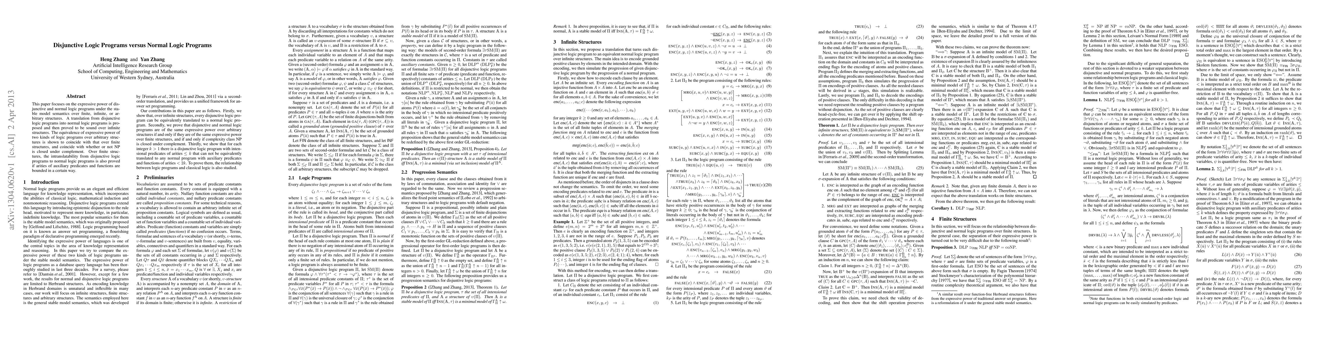 This paper investigates the expressive power of disjunctive versus normal logic programs, proposing a translation from disjunctive to normal logic programs that is sound over infinite structures. It concludes that their equivalence over arbitrary structures depends on whether NP is closed under complement, and proves intranslatability under bounded predicates and functions for finite structures.