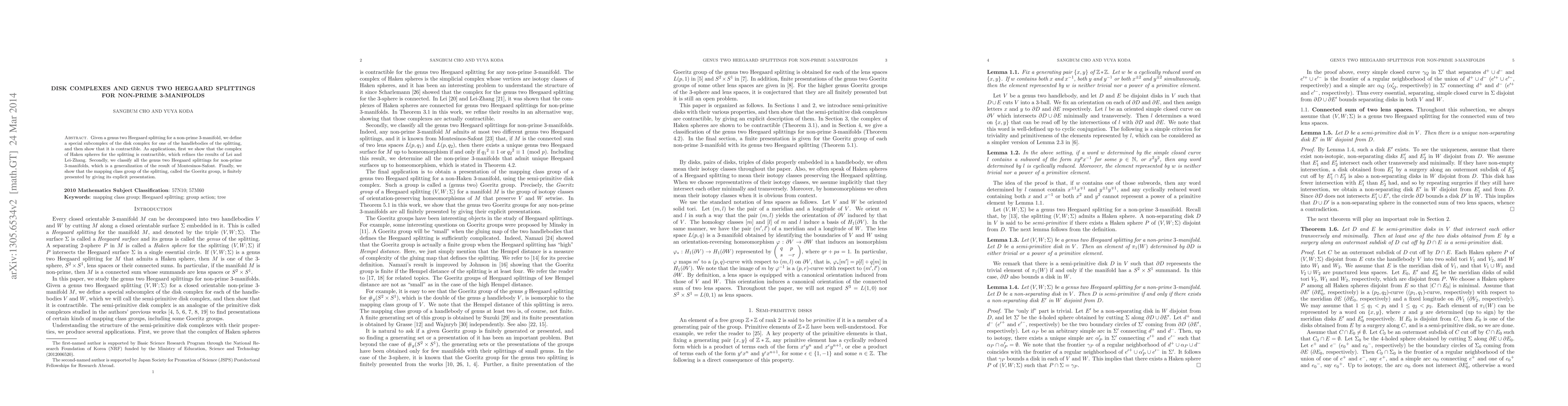 Researchers show that a specific subcomplex of disk complexes for genus two Heegaard splittings in non-prime 3-manifolds is contractible, leading to classifications and implications for the Goeritz group's presentation.