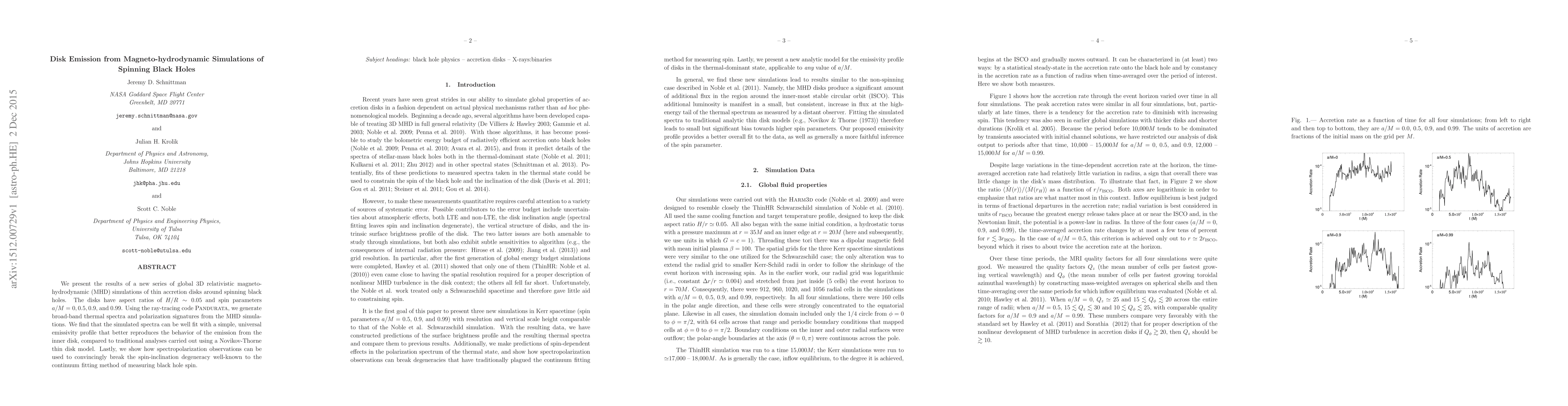 This paper presents 3D relativistic MHD simulations of accretion disks around spinning black holes, finding that a universal emissivity profile better describes inner disk emission than traditional models. It also demonstrates how spectropolarization observations can effectively distinguish black hole spin from inclination.