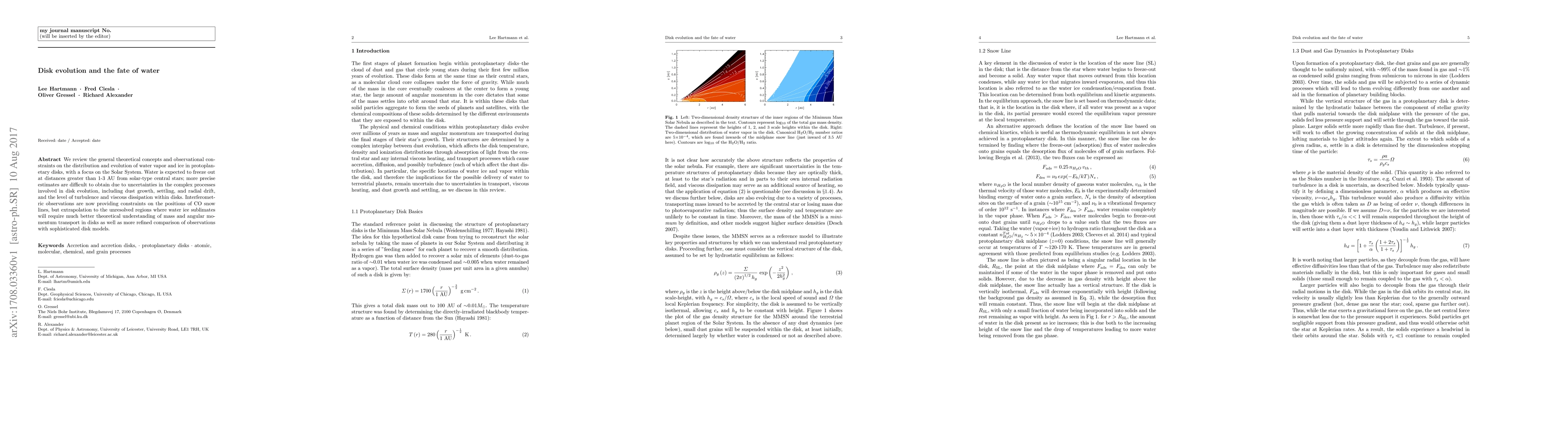 Research on protoplanetary disks indicates that water vapor and ice typically freeze out beyond 1-3 AU from solar-type stars, but uncertainties in disk evolution processes hinder precise estimates. Interferometric observations provide constraints on CO snow lines, highlighting the need for improved theoretical understanding of mass transport and disk models.