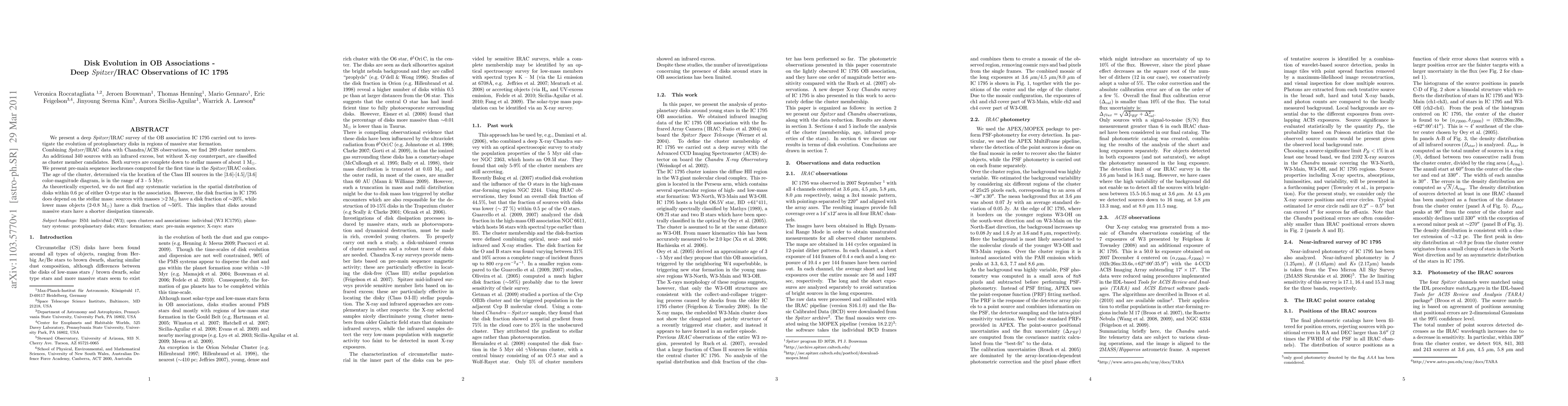 The research presents a Spitzer/IRAC deep survey of IC 1795, an OB association, revealing 289 cluster members and 340 disk candidate sources. The study finds that disk evolution varies with stellar mass, with massive stars (>2 Msun) having a ~20% disk fraction and lower mass objects (2-0.8 Msun) having a ~50% disk fraction. This implies disks around massive stars dissipate faster, challenging previous theories.