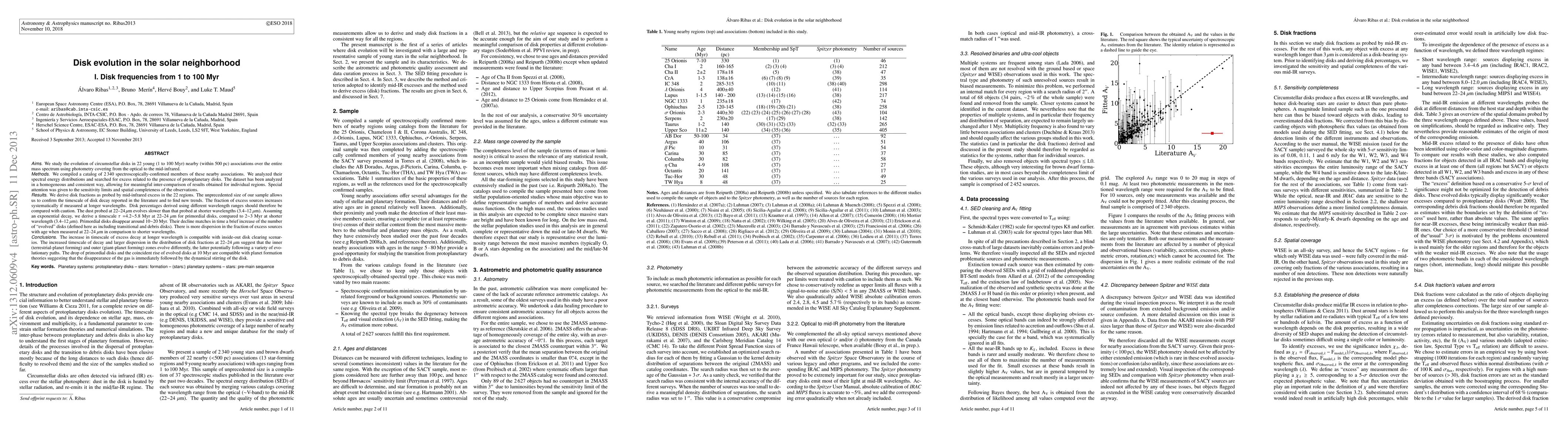 A combination of Spitzer and WISE data were used to study disk evolution in the solar neighborhood.