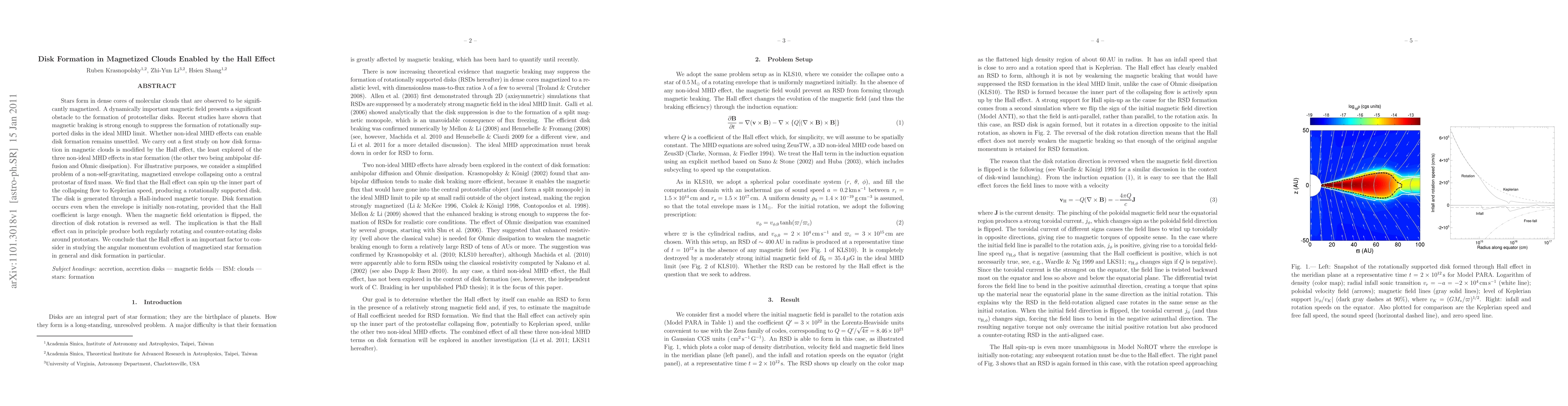 The Hall effect can enable disk formation in magnetized molecular clouds by generating a magnetic torque that spins up the inner flow, leading to rotationally supported disks even from initially non-rotating envelopes, thus playing a crucial role in angular momentum evolution during star formation.