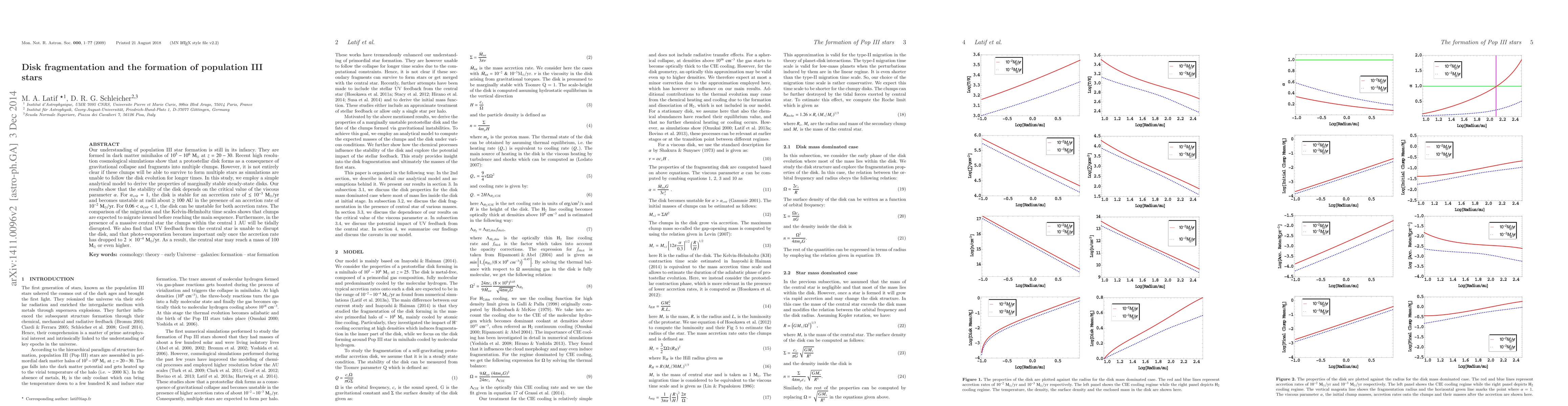 Our understanding of population III star formation is still in its infancy. They are formed in dark matter minihalos of $\rm 10^5-10^6 M_{\odot}$ at $z=20-30$. Recent high resolution cosmological simulations show that a protostellar disk forms as a consequence of gravitational collapse and fragments into multiple clumps. However, it is not entirely clear if these clumps will be able to survive to form multiple stars as simulations are unable to follow the disk evolution for longer times. In this study, we employ a simple analytical model to derive the properties of marginally stable steady-state disks. Our results show that the stability of the disk depends on the critical value of the viscous parameter $\alpha$. For $\alpha_{crit} = 1$, the disk is stable for an accretion rate of $\rm \leq 10^{-3} M_{\odot}/yr$ and becomes unstable at radii about $\rm \geq 100 AU$ in the presence of an accretion rate of $\rm 10^{-2} M_{\odot}/yr$. For $0.06 < \alpha_{crit} < 1$, the disk can be unstable for both accretion rates. The comparison of the migration and the Kelvin-Helmholtz time scales shows that clumps are expected to migrate inward before reaching the main sequence. Furthermore, in the presence of a massive central star the clumps within the central 1 AU will be tidally disrupted. We also find that UV feedback from the central star is unable to disrupt the disk, and that photo-evaporation becomes important only once the accretion rate has dropped to $\rm 2 \times 10^{-4} M_{\odot}/yr$. As a result, the central star may reach a mass of 100 $\rm M_{\odot}$ or even higher.