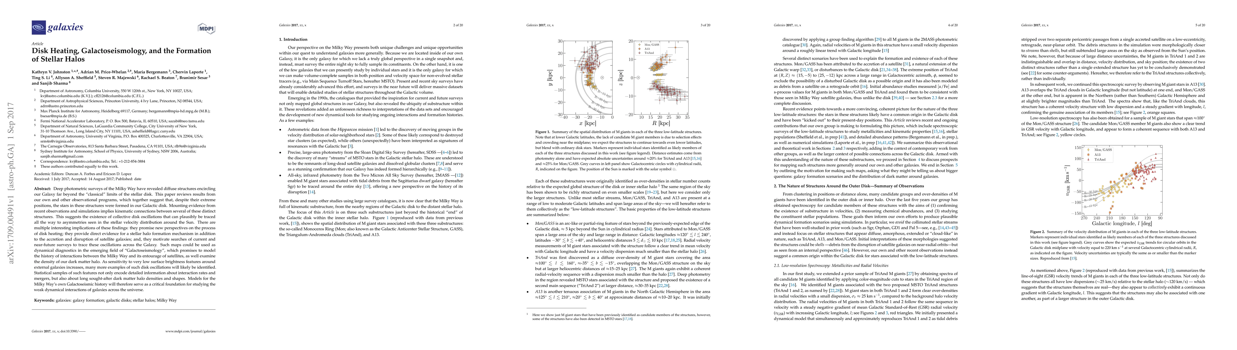 Deep photometric surveys of the Milky Way have revealed diffuse structures encircling our Galaxy far beyond the "classical" limits of the stellar disk. This paper reviews results from our own and other observational programs, which together suggest that, despite their extreme positions, the stars in these structures were formed in our Galactic disk. Mounting evidence from recent observations and simulations implies kinematic connections between several of these distinct structures. This suggests the existence of collective disk oscillations that can plausibly be traced all the way to asymmetries seen in the stellar velocity distribution around the Sun. There are multiple interesting implications of these findings: they promise new perspectives on the process of disk heating, they provide direct evidence for a stellar halo formation mechanism in addition to the accretion and disruption of satellite galaxies, and, they motivate searches of current and near-future surveys to trace these oscillations across the Galaxy. Such maps could be used as dynamical diagnostics in the emerging field of "Galactoseismology", which promises to model the history of interactions between the Milky Way and its entourage of satellites, as well examine the density of our dark matter halo. As sensitivity to very low surface brightness features around external galaxies increases, many more examples of such disk oscillations will likely be identified. Statistical samples of such features not only encode detailed information about interaction rates and mergers, but also about long sought-after dark matter halo densities and shapes. Models for the Milky Way's own Galactoseismic history will therefore serve as a critical foundation for studying the weak dynamical interactions of galaxies across the universe.