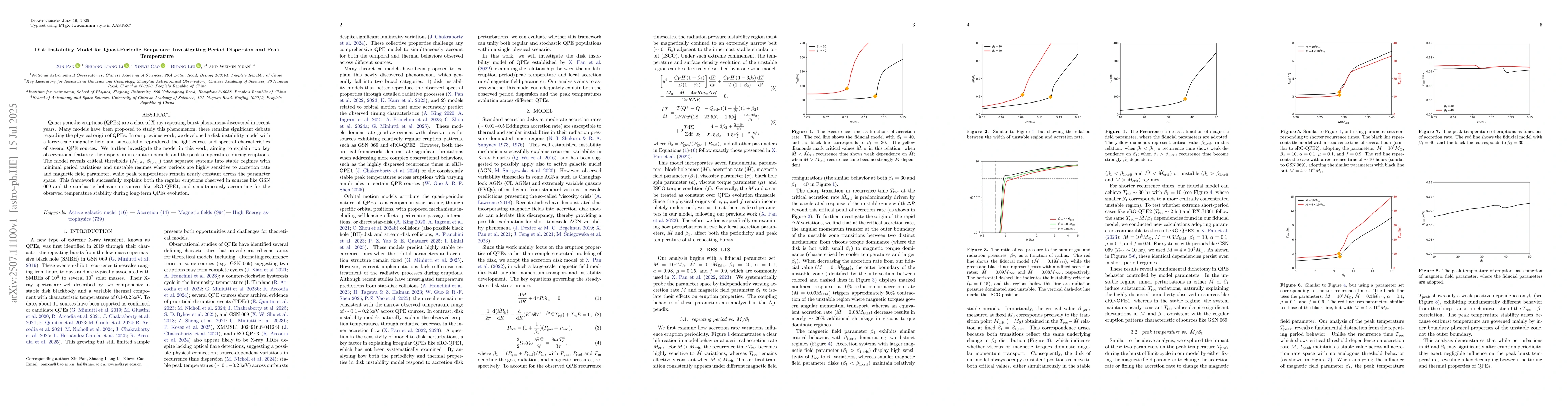Quasi-periodic eruptions (QPEs) are a class of X-ray repeating burst phenomena discovered in recent years. Many models have been proposed to study this phenomenon, there remains significant debate regarding the physical origin of QPEs. In our previous work, we developed a disk instability model with a large-scale magnetic field and successfully reproduced the light curves and spectral characteristics of several QPE sources. We further investigate the model in this work, aiming to explain two key observational features: the dispersion in eruption periods and the peak temperatures during eruptions. The model reveals critical thresholds ($\dot{M}_{\rm crit}$, $\beta_{1,\rm crit}$) that separate systems into stable regimes with minimal period variations and unstable regimes where periods are highly sensitive to accretion rate and magnetic field parameter, while peak temperatures remain nearly constant across the parameter space. This framework successfully explains both the regular eruptions observed in sources like GSN 069 and the stochastic behavior in sources like eRO-QPE1, and simultaneously accounting for the observed temperature stability during long-term QPEs evolution.