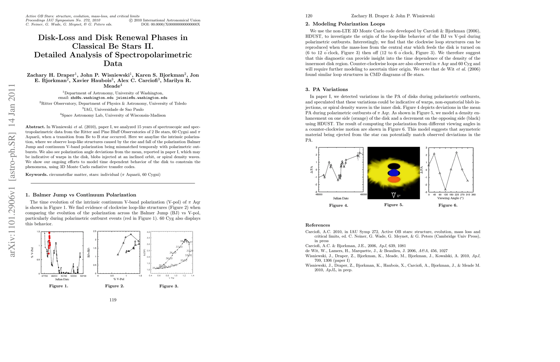In Wisniewski et al. 2010, paper I, we analyzed 15 years of spectroscopic and spectropolarimetric data from the Ritter and Pine Bluff Observatories of 2 Be stars, 60 Cygni and {\pi} Aquarii, when a transition from Be to B star occurred. Here we anaylize the intrinsic polarization, where we observe loop-like structures caused by the rise and fall of the polarization Balmer Jump and continuum V-band polarization being mismatched temporally with polarimetric outbursts. We also see polarization angle deviations from the mean, reported in paper I, which may be indicative of warps in the disk, blobs injected at an inclined orbit, or spiral density waves. We show our ongoing efforts to model time dependent behavior of the disk to constrain the phenomena, using 3D Monte Carlo radiative transfer codes.