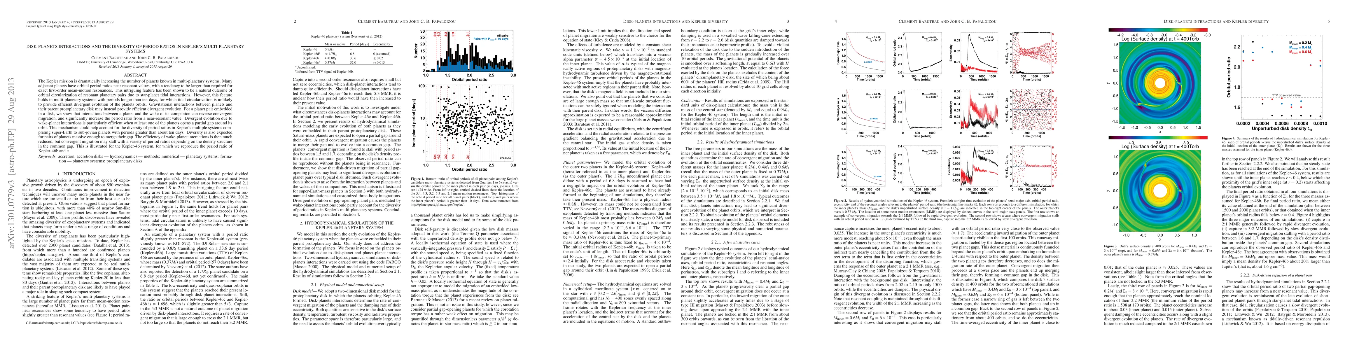 The Kepler mission is dramatically increasing the number of planets known in multi-planetary systems. Many adjacent planets have orbital period ratios near resonant values, with a tendency to be larger than required for exact first-order mean-motion resonances. This intriguing feature has been shown to be a natural outcome of orbital circularization of resonant planetary pairs due to star-planet tidal interactions. However, this feature holds in multi-planetary systems with periods longer than ten days, for which tidal circularization is unlikely to provide efficient divergent evolution of the planets orbits. Gravitational interactions between planets and their parent protoplanetary disk may instead provide efficient divergent evolution. For a planet pair embedded in a disk, we show that interactions between a planet and the wake of its companion can reverse convergent migration, and significantly increase the period ratio from a near-resonant value. Divergent evolution due to wake-planet interactions is particularly efficient when at least one of the planets opens a partial gap around its orbit. This mechanism could help account for the diversity of period ratios in Kepler's multiple systems comprising super-Earth to sub-jovian planets with periods greater than about ten days. Diversity is also expected for planet pairs massive enough to merge their gap. The efficiency of wake-planet interactions is then much reduced, but convergent migration may stall with a variety of period ratios depending on the density structure in the common gap. This is illustrated for the Kepler-46 system, for which we reproduce the period ratio of Kepler-46b and c.