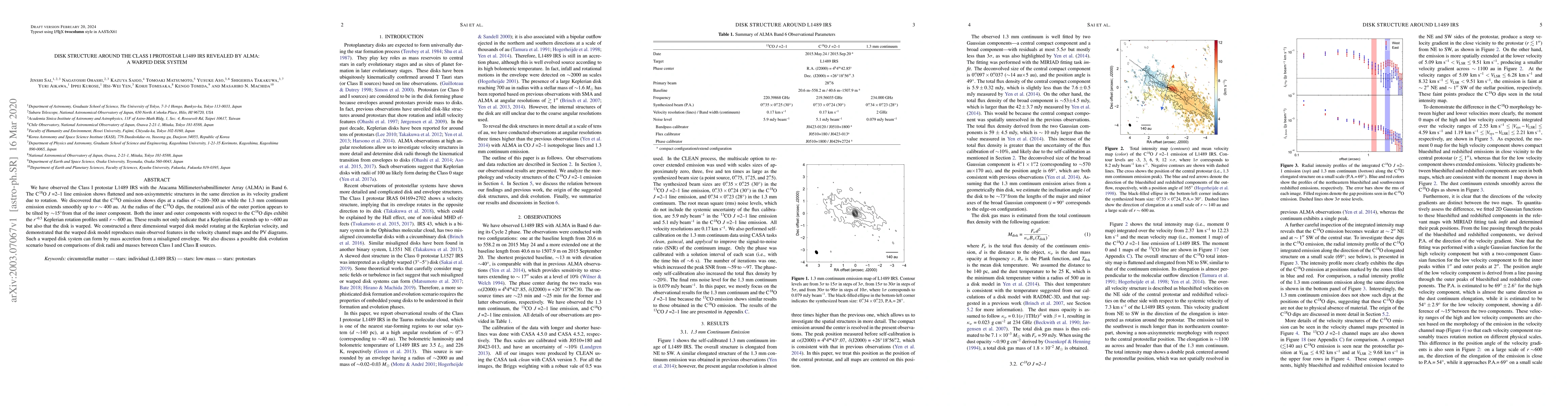 We have observed the Class I protostar L1489 IRS with the Atacama Millimeter/submillimeter Array (ALMA) in Band 6. The C$^{18}$O $J=$2-1 line emission shows flattened and non-axisymmetric structures in the same direction as its velocity gradient due to rotation. We discovered that the C$^{18}$O emission shows dips at a radius of ~200-300 au while the 1.3 mm continuum emission extends smoothly up to r~400 au. At the radius of the C$^{18}$O dips, the rotational axis of the outer portion appears to be tilted by ~15 degrees from that of the inner component. Both the inner and outer components with respect to the C$^{18}$O dips exhibit the $r^{-0.5}$ Keplerian rotation profiles until r~600 au. These results not only indicate that a Keplerian disk extends up to ~600 au but also that the disk is warped. We constructed a three dimensional warped disk model rotating at the Keplerian velocity, and demonstrated that the warped disk model reproduces main observed features in the velocity channel maps and the PV diagrams. Such a warped disk system can form by mass accretion from a misaligned envelope. We also discuss a possible disk evolution scenario based on comparisons of disk radii and masses between Class I and Class II sources.