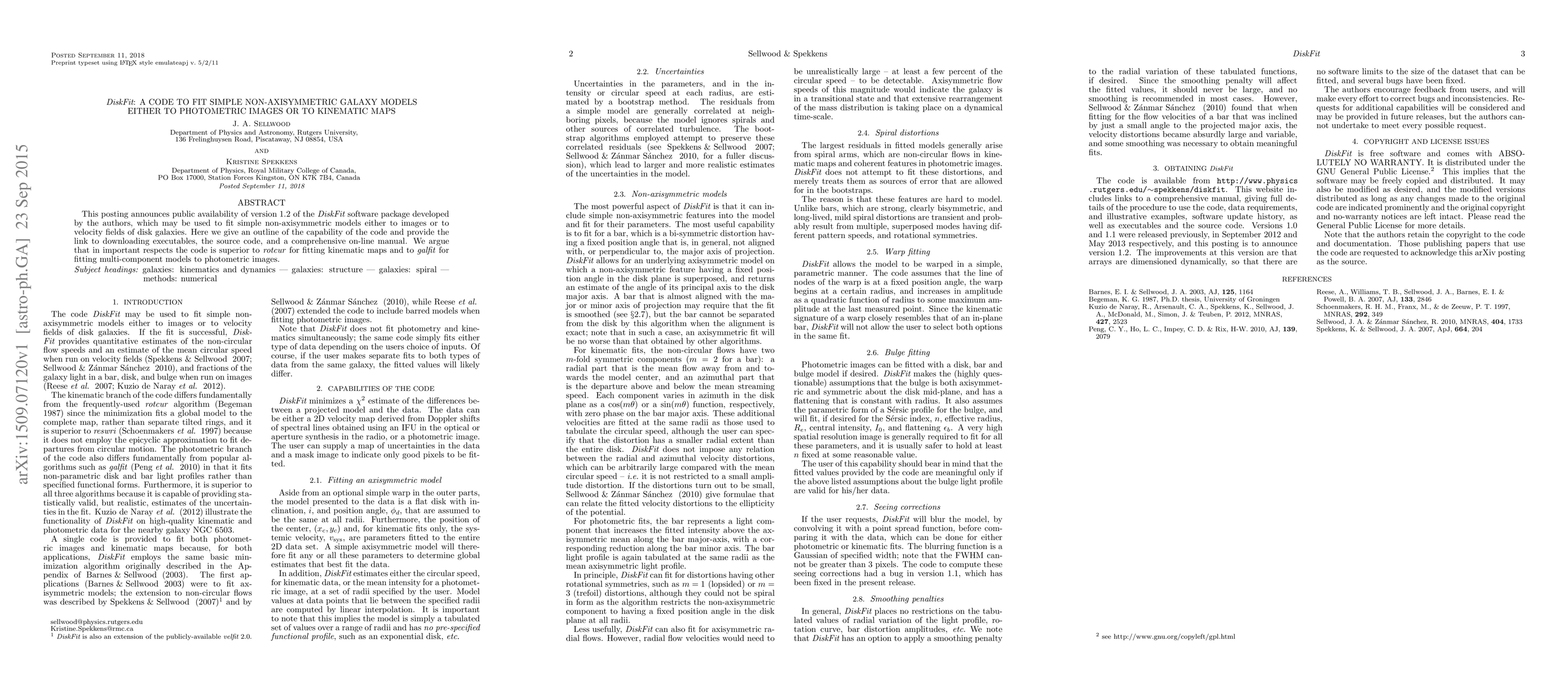 DiskFit 1.2, a software package for fitting non-axisymmetric models to galaxy images or velocity fields, is now available. It surpasses rotcur for kinematic map fitting and galfit for multi-component image modeling, offering superior capabilities.