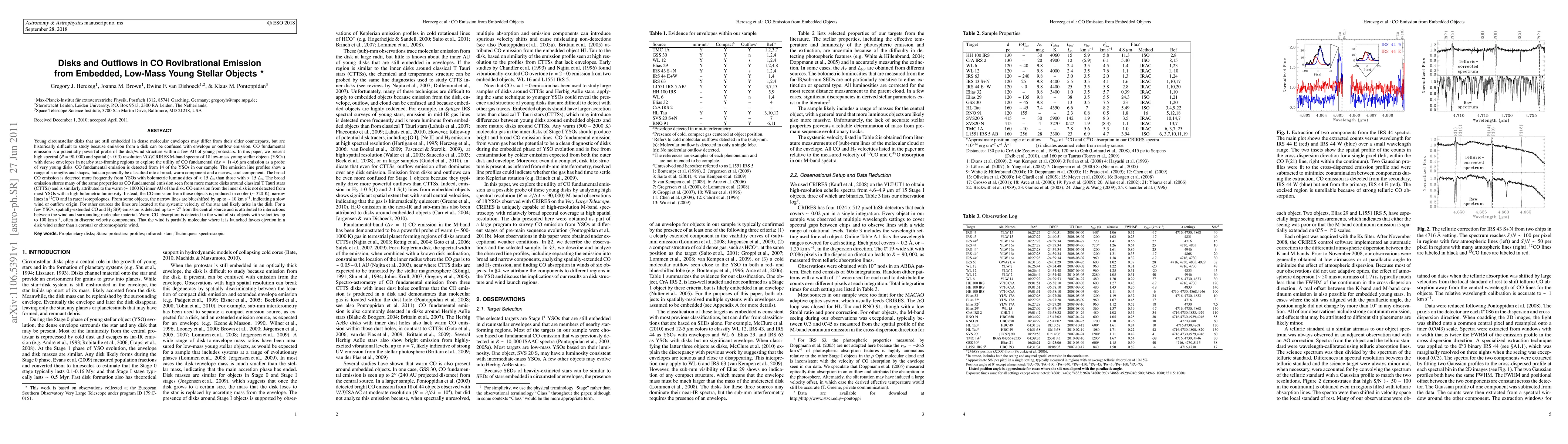Young circumstellar disks that are still embedded in dense molecular envelopes may differ from their older counterparts, but are historically difficult to study because emission from a disk can be confused with envelope or outflow emission. CO fundamental emission is a potentially powerful probe of the disk/wind structure within a few AU of young protostars. In this paper, we present high spectral (R=90,000) and spatial (0.3") resolution VLT/CRIRES M-band spectra of 18 low-mass young stellar objects (YSOs) with dense envelopes in nearby star-froming regions to explore the utility of CO fundamental 4.6 micron emission as a probe of very young disks. CO fundamental emission is detected from 14 of the YSOs in our sample. The emission line profiles show a range of strengths and shapes, but can generally be classified into a broad, warm component and a narrow, cool component. The broad CO emission is detected more frequently from YSOs with bolometric luminosities of <15 Lsun than those with >15 Lsun, and as with CO emission from CTTSs is attributed to the warm (~1000 K) inner AU of the disk. The CO emission from objects with high bolometric luminosity is produced in cooler (~320 K), narrow lines in 12CO and in rarer isotopologues. From some objects, the narrow lines are blueshifted by up to ~10 km/s, indicating a slow wind origin. For other sources the lines are located at the systemic velocity of the star and likely arise in the disk. For a few YSOs, spatially-extended CO and H2 S(9) emission is detected up to 2" from the central source and is attributed to interactions between the wind and surrounding molecular material. Warm CO absorption is detected in the wind of six objects with velocities up to 100 km/s, often in discrete velocity components. That the wind is partially molecular where it is launched favors ejection in a disk wind rather than a coronal or chromospheric wind.