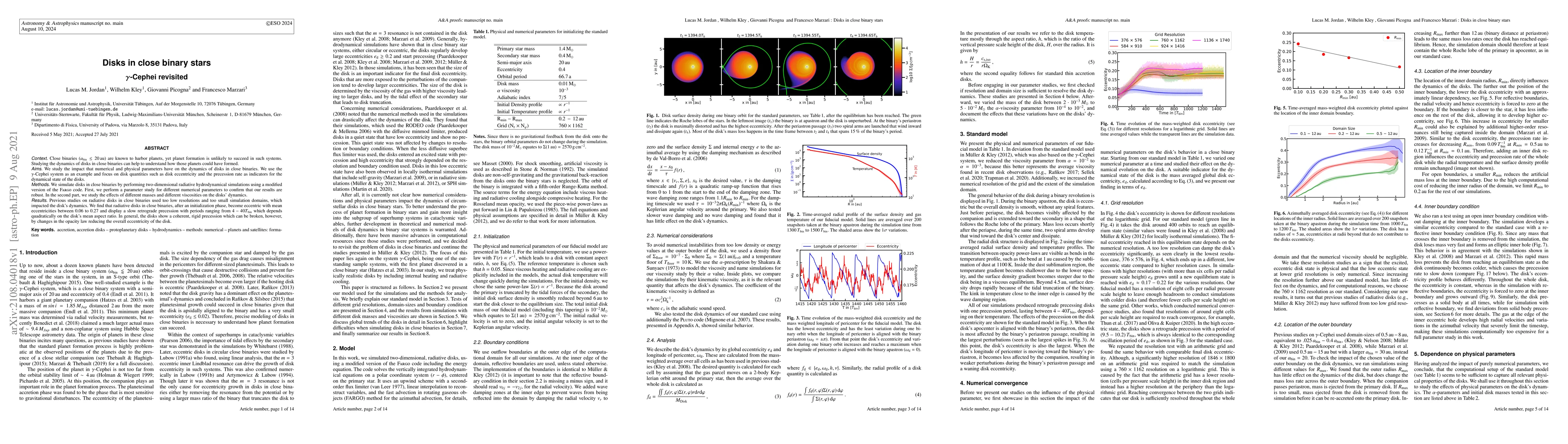 Close binaries ($a_{bin} < 20$ au) are known to harbor planets, yet planet formation is unlikely to succeed in such systems. Studying the dynamics of disks in close binaries can help to understand how those planets could have formed. We study the impact that numerical and physical parameters have on the dynamics of disks in close binaries. We use the $\gamma$-Cephei system as an example and focus on disk quantities such as disk eccentricity and the precession rate as indicators for the dynamical state of the disks. We simulate disks in close binaries by performing two-dimensional radiative hydrodynamical simulations using a modified version of the Fargo code. First, we perform a parameter study for different numerical parameters to confirm that our results are robust. In the second part, we study the effects of different masses and different viscosities on the disks' dynamics. Previous studies on radiative disks in close binaries used too low resolutions and too small simulation domains, which impacted the disk's dynamics. We find that radiative disks in close binaries, after an initialization phase, become eccentric with mean eccentricities between 0.06 to 0.27 and display a slow retrograde precession with periods ranging from $4 - 40T_{bin}$ which depends quadratically on the disk's mean aspect ratio. In general, the disks show a coherent, rigid precession which can be broken, however, by changes in the opacity law reducing the overall eccentricity of the disk.