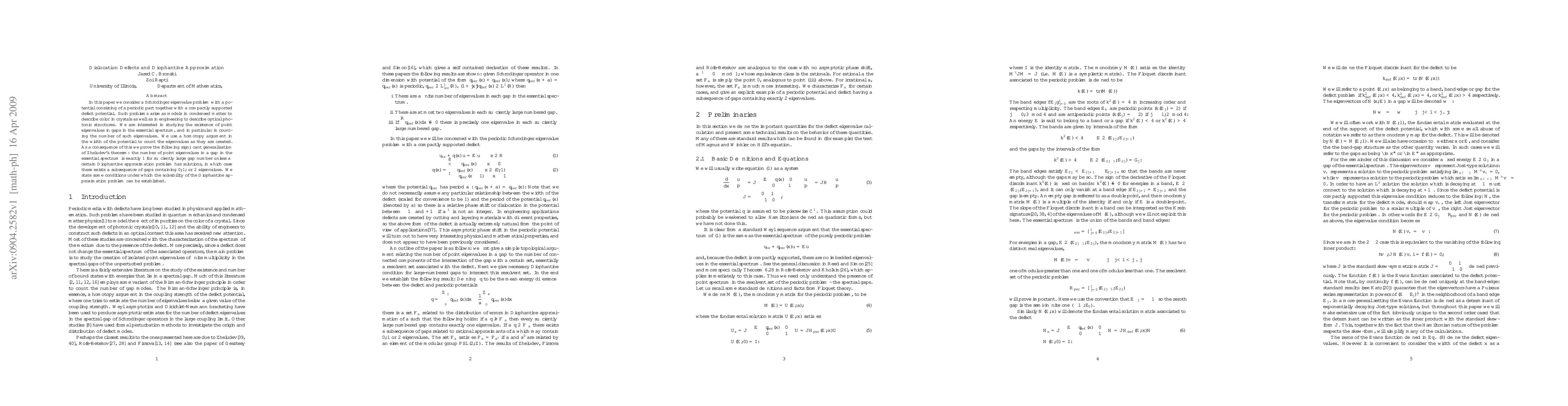 In this paper we consider a Schrodinger eigenvalue problem with a potential consisting of a periodic part together with a compactly supported defect potential. Such problems arise as models in condensed matter to describe color in crystals as well as in engineering to describe optical photonic structures. We are interested in studying the existence of point eigenvalues in gaps in the essential spectrum, and in particular in counting the number of such eigenvalues. We use a homotopy argument in the width of the potential to count the eigenvalues as they are created. As a consequence of this we prove the following significant generalization of Zheludev's theorem: the number of point eigenvalues in a gap in the essential spectrum is exactly one for sufficiently large gap number unless a certain Diophantine approximation problem has solutions, in which case there exists a subsequence of gaps containing 0,1 or 2 eigenvalues. We state some conditions under which the solvability of the Diophantine approximation problem can be established.