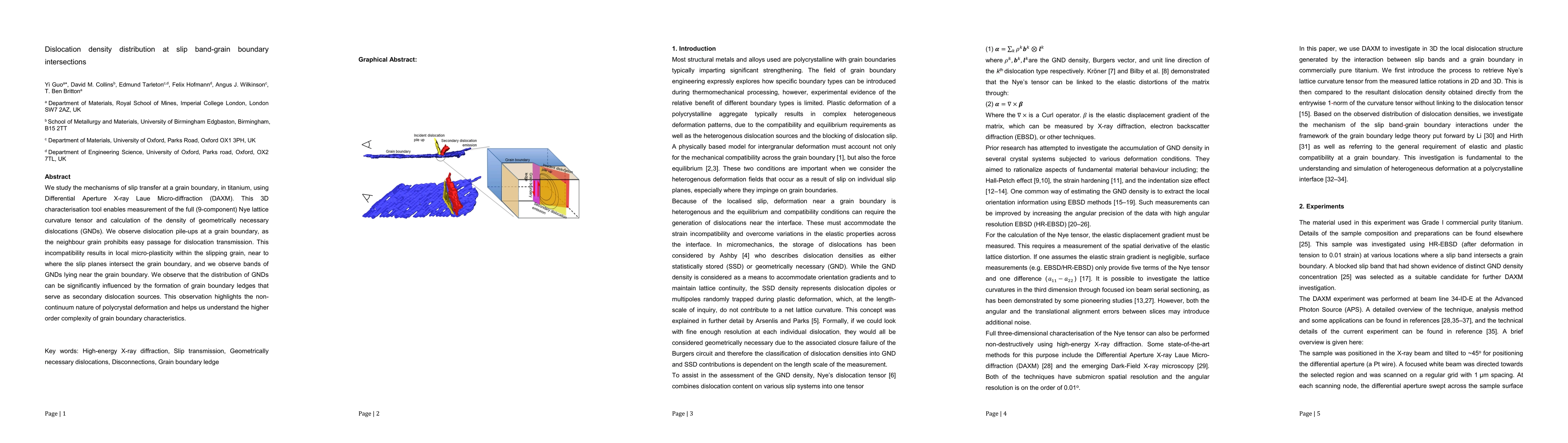 This study investigates slip transfer mechanisms at grain boundaries in titanium using DAXM, revealing dislocation pile-ups and local micro-plasticity due to impeded dislocation transmission. The research highlights how grain boundary ledges influence the distribution of geometrically necessary dislocations, underscoring the complex nature of polycrystalline deformation.