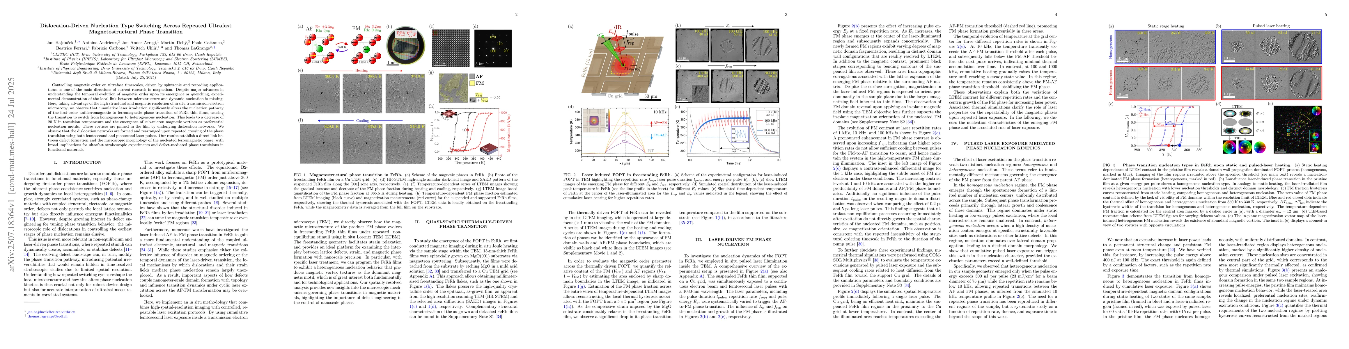 The paper presents a detailed analysis of how defects, specifically dislocation networks, influence the nucleation pathway and temperature of the magnetostructural phase transition in FeRh thin films under ultrafast laser irradiation.