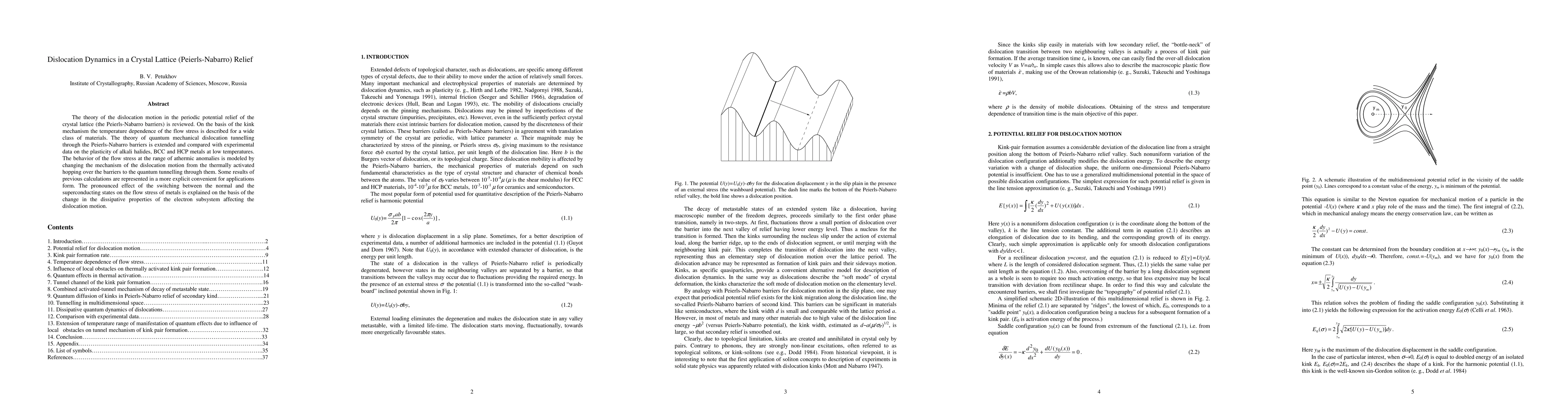 The theory of the dislocation motion in the periodic potential relief of the crystal lattice (the Peierls-Nabarro barriers) is reviewed. On the basis of the kink mechanism the temperature dependence of the flow stress is described for a wide class of materials. The theory of quantum mechanical dislocation tunnelling through the Peierls-Nabarro barriers is extended and compared with experimental data on the plasticity of alkali halides, BCC and HCP metals at low temperatures. The behavior of the flow stress at the range of athermic anomalies is modeled by changing the mechanism of the dislocation motion from the thermally activated hopping over the barriers to the quantum tunnelling through them. Some results of previous calculations are represented in a more explicit convenient for applications form. The pronounced effect of the switching between the normal and the superconducting states on the flow stress of metals is explained on the basis of the change in the dissipative properties of the electron subsystem affecting the dislocation motion.