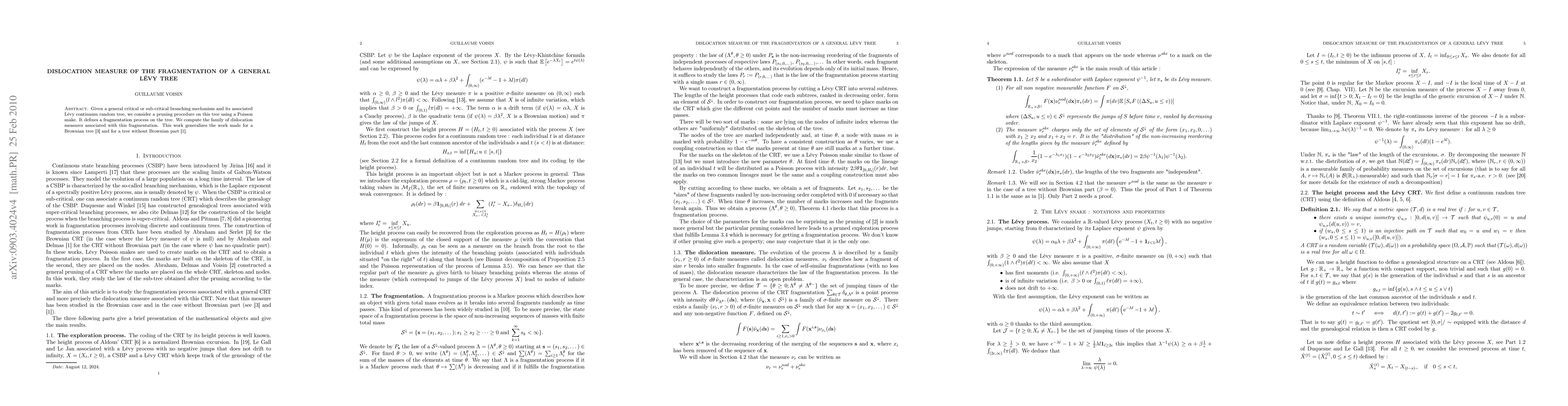 This paper studies a pruning procedure on a general Lévy tree using a Poisson snake to define a fragmentation process, and computes the dislocation measures associated with this process. The work generalizes previous studies on both Brownian trees and Lévy trees without Brownian parts.